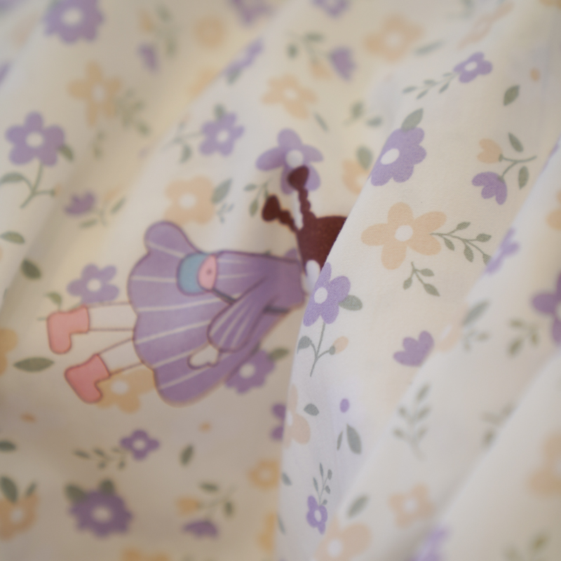 东林布业 2023新款套件面料化纤面料水洗双层纱系列4,松鼠乐园,涂鸦乐园,五彩小熊,小幸运,郁金香紫,紫韵