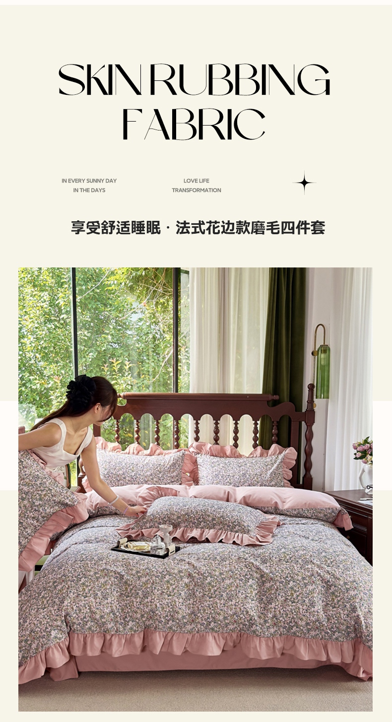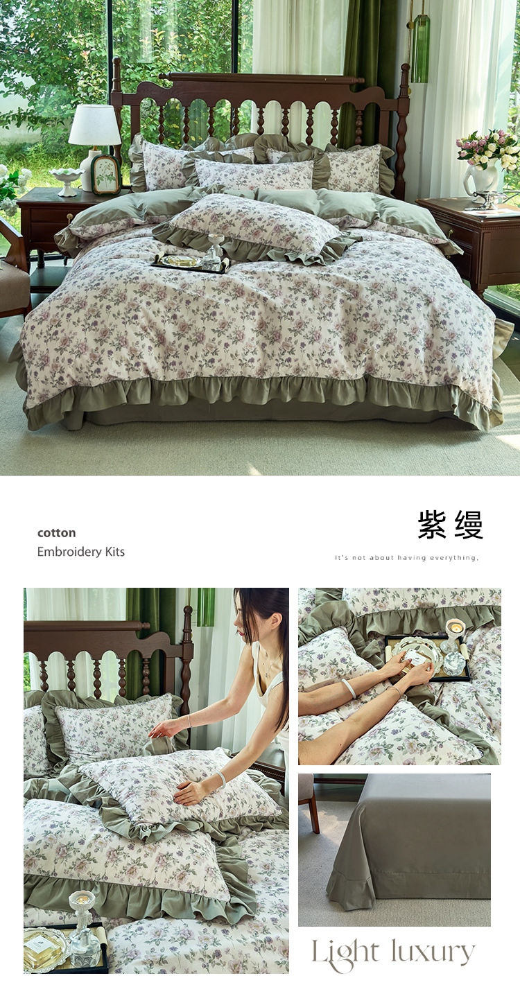 当前位置: 91家纺网 > 商品网购 > 床品套件 > 四件套 > 普通磨毛四件套 > 未来家居 2025秋冬新款全棉法式花边款磨毛四件套 珍妮-绿