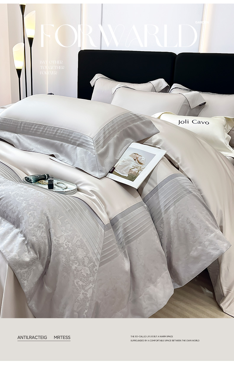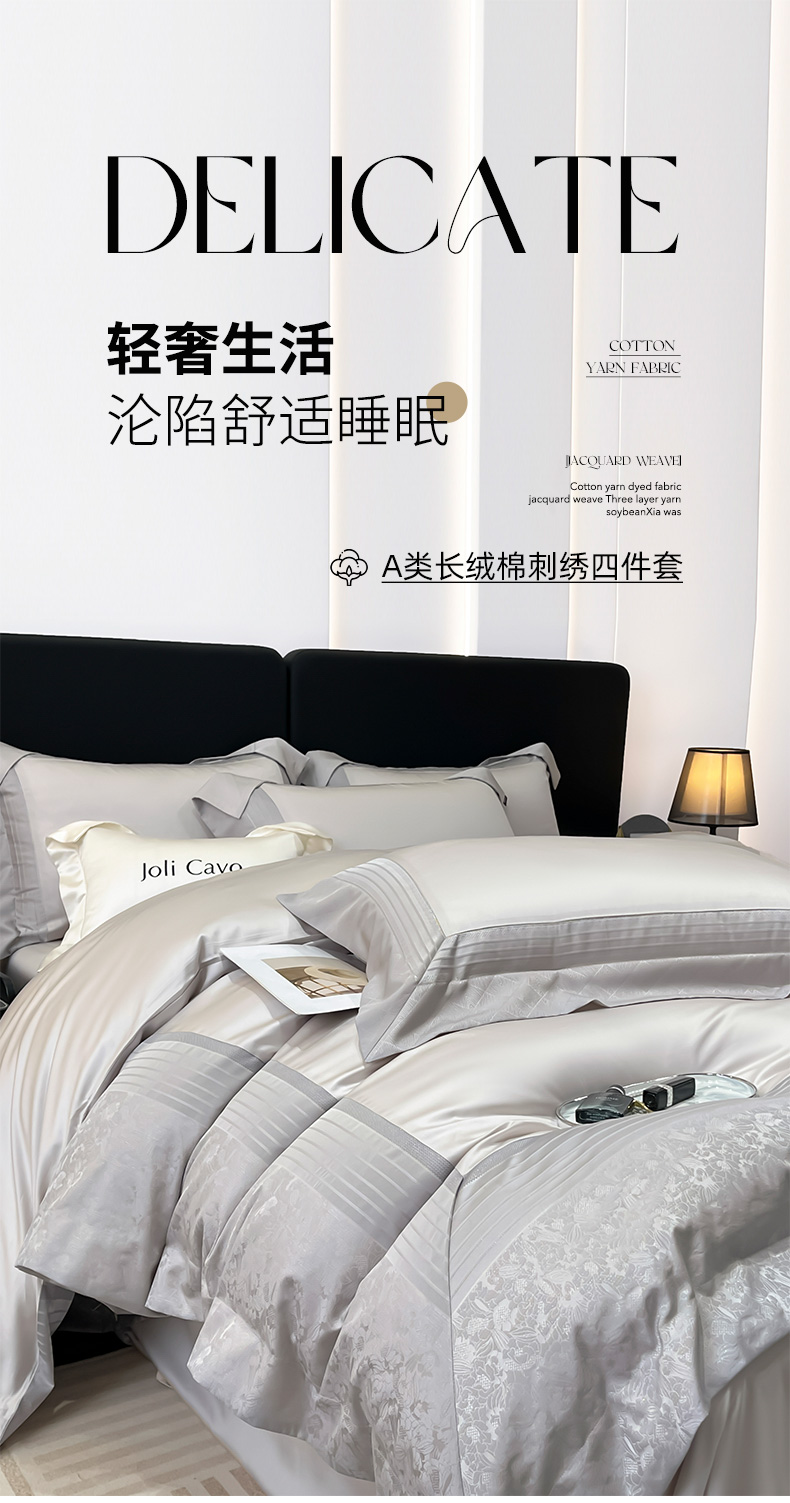 当前位置: 91家纺网 > 商品网购 > 床品套件 > 四件套 > 水晶绒四件套 > 2025新款秋冬A类贡缎提花长绒棉四件套全棉纯棉轻奢风重工拼接被套纯色床单床笠高端床上用品-莫黛 莫黛-月桂灰