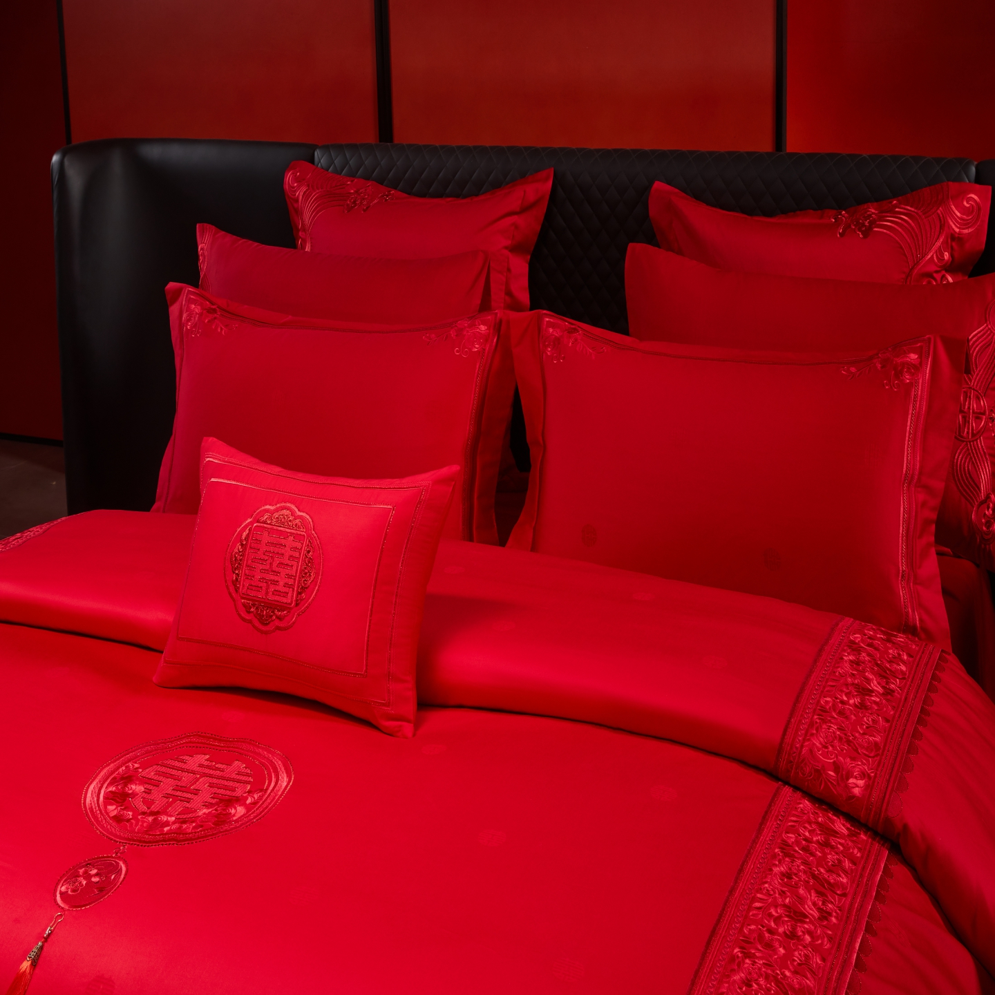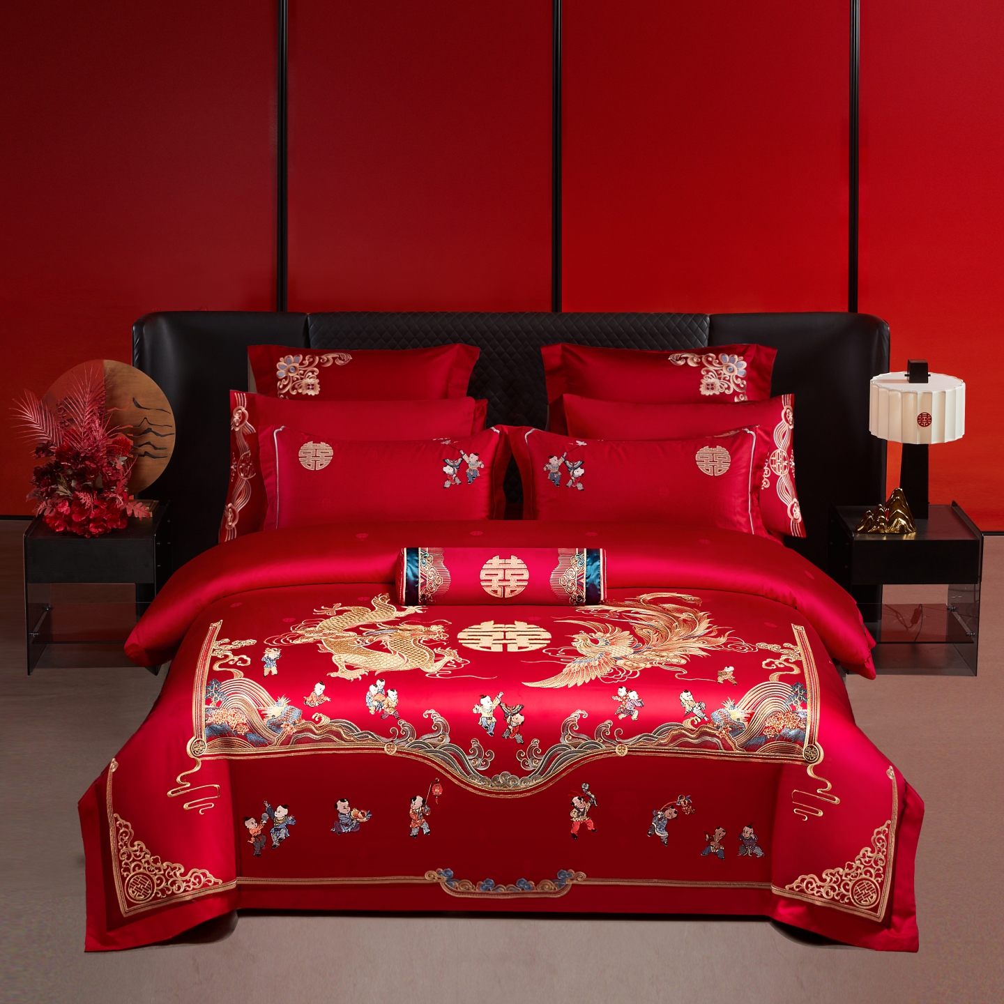 当前位置: 91家纺网 > 商品网购 > 床品套件 > 四件套 > 婚庆四件套 > 宏羽纺家纺 2025新款高支高密纯棉婚庆系列四件套 爱的花语