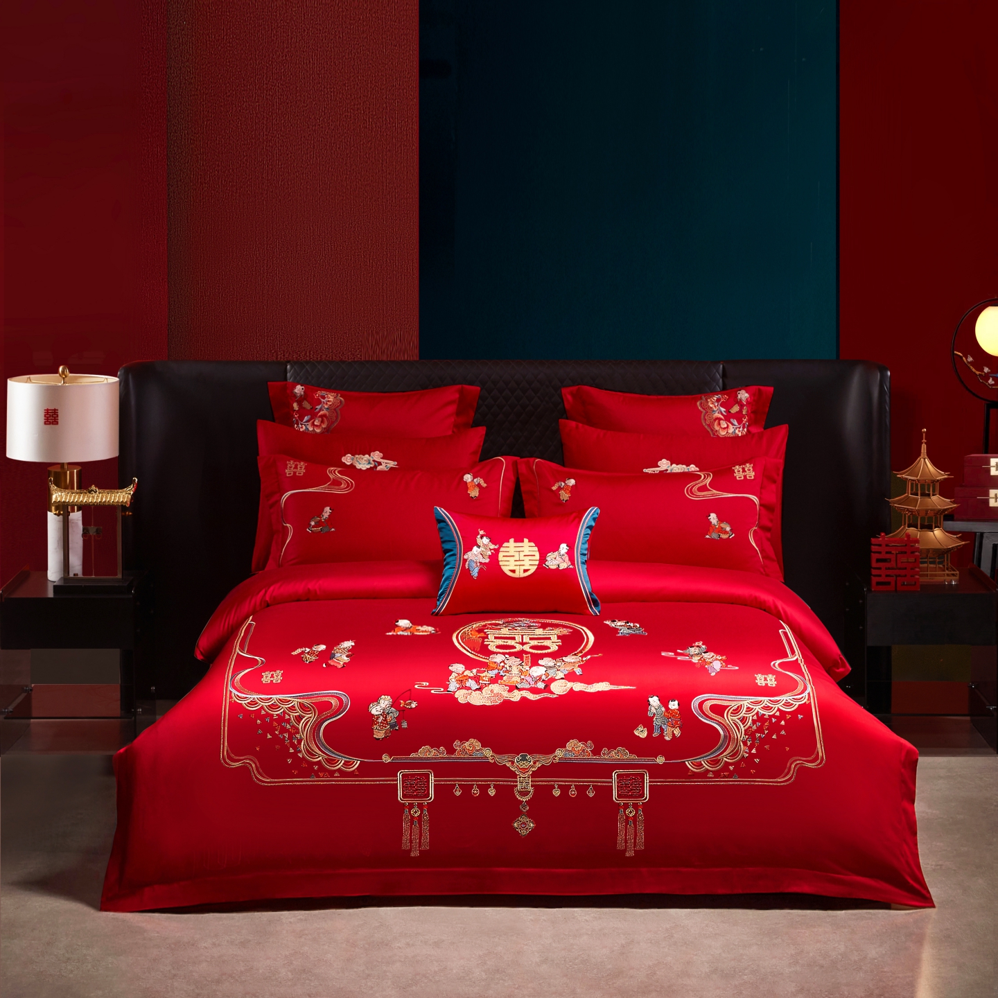 当前位置: 91家纺网 > 商品网购 > 床品套件 > 四件套 > 婚庆四件套 > 宏羽纺家纺 2025新款高支高密纯棉婚庆系列四件套 新龙凤爱恋