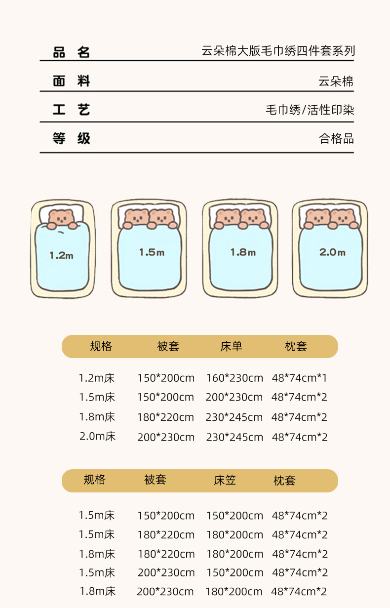 商品名称:(总)艾特你 2025新款高克重云朵棉大版毛巾绣四件套三件套
