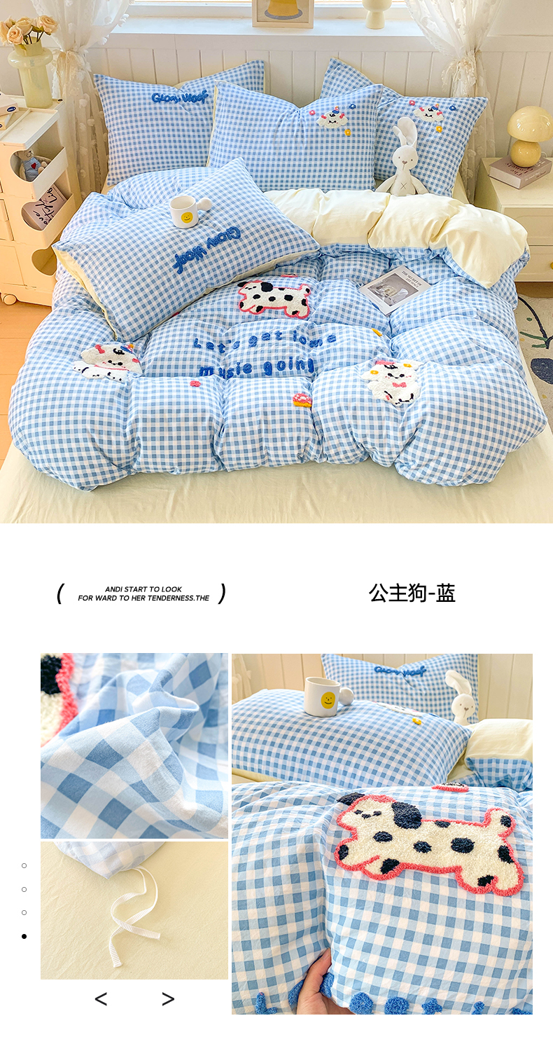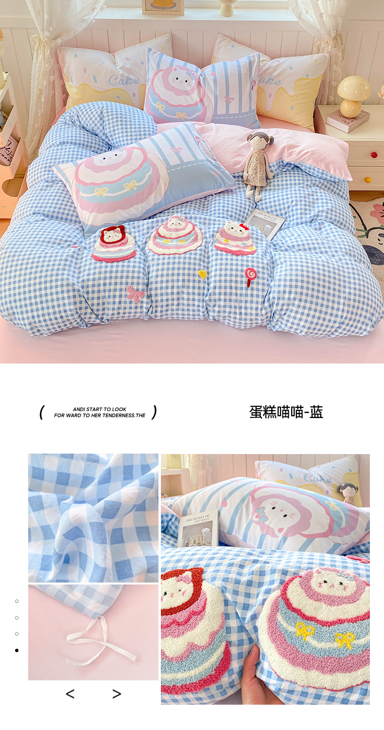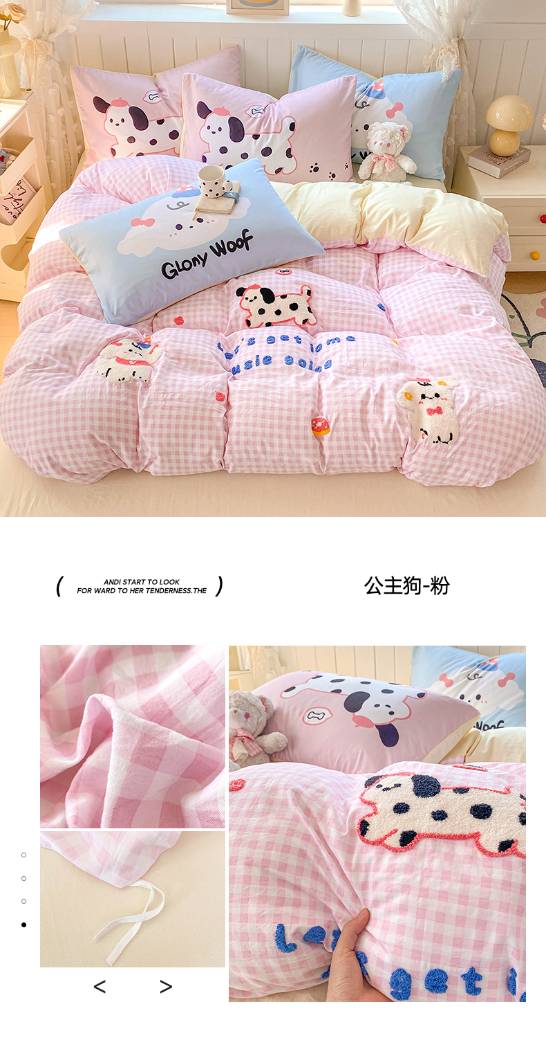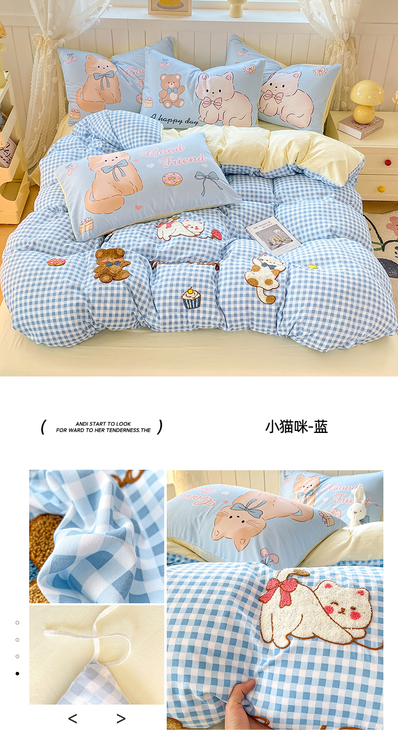 (总)艾特你 2025新款200克全工艺高克重牛奶绒贴布绣大包边四件套,樱桃柯基,可爱多,蓝色猫咪,美黑猫咪,小黑猫