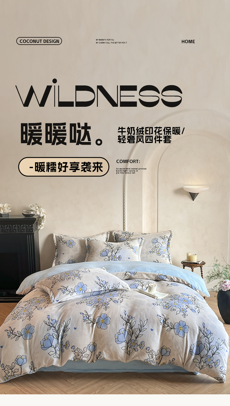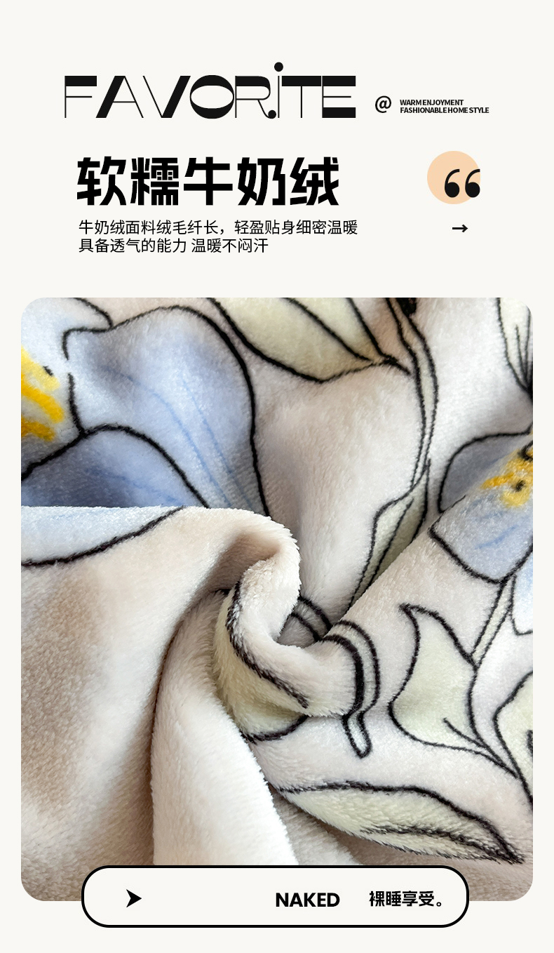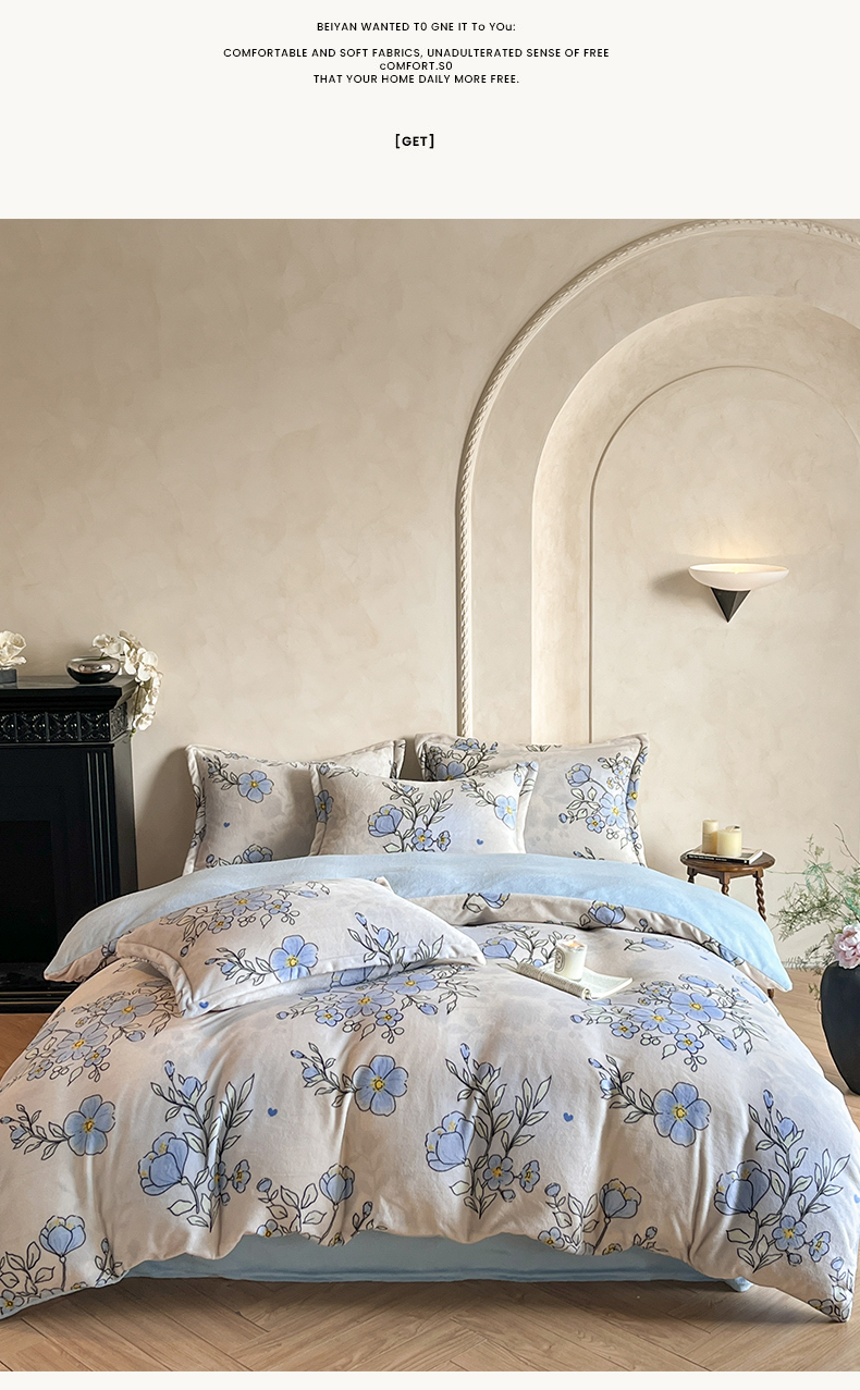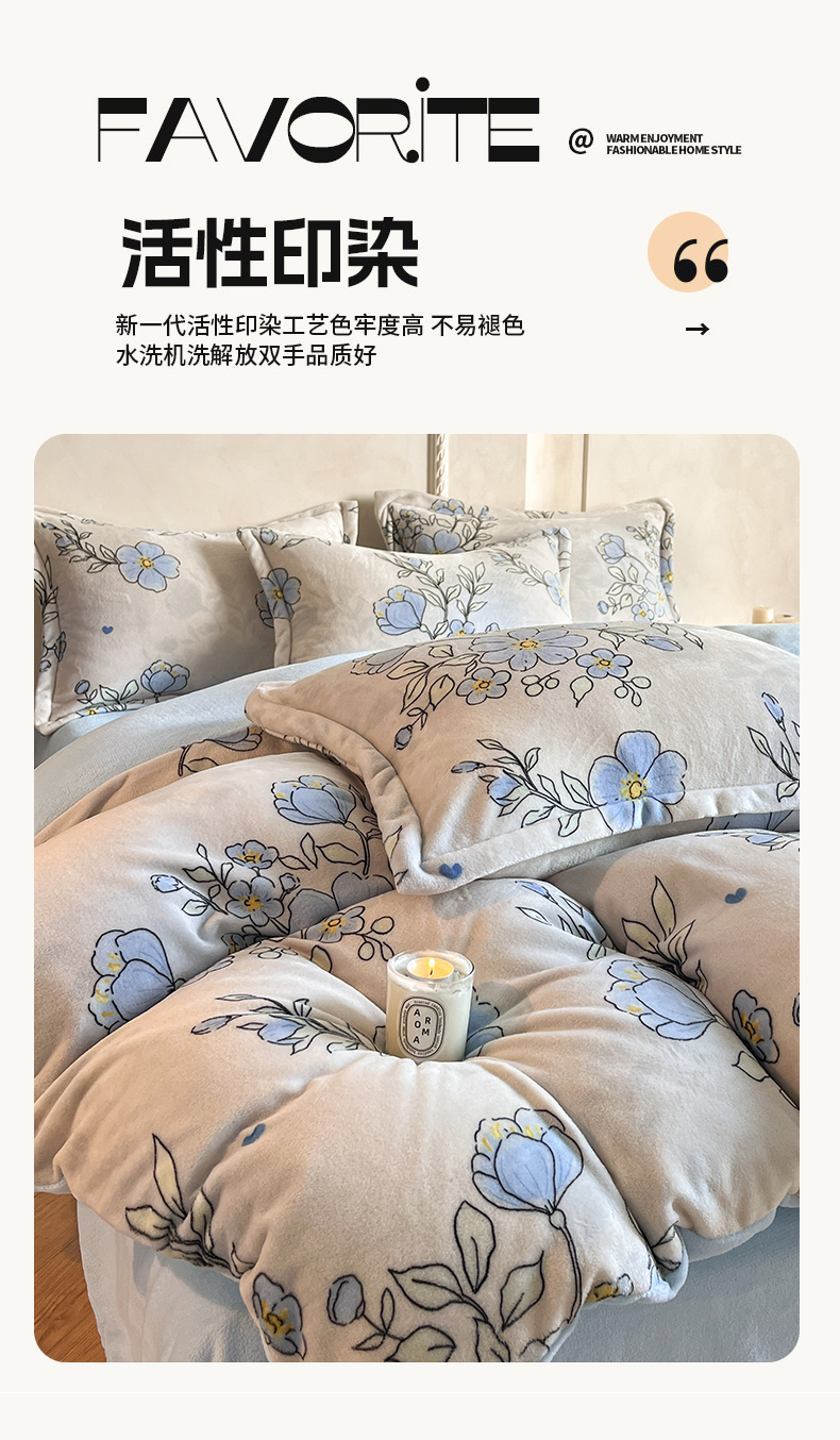 当前位置: 91家纺网 > 商品网购 > 床品套件 > 四件套 > 牛奶绒四件套 > 川悦生活 2025新款轻奢风高克重牛奶绒印花保暖四件套 青空水月