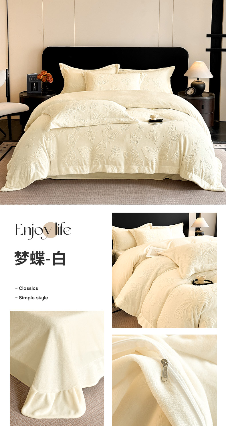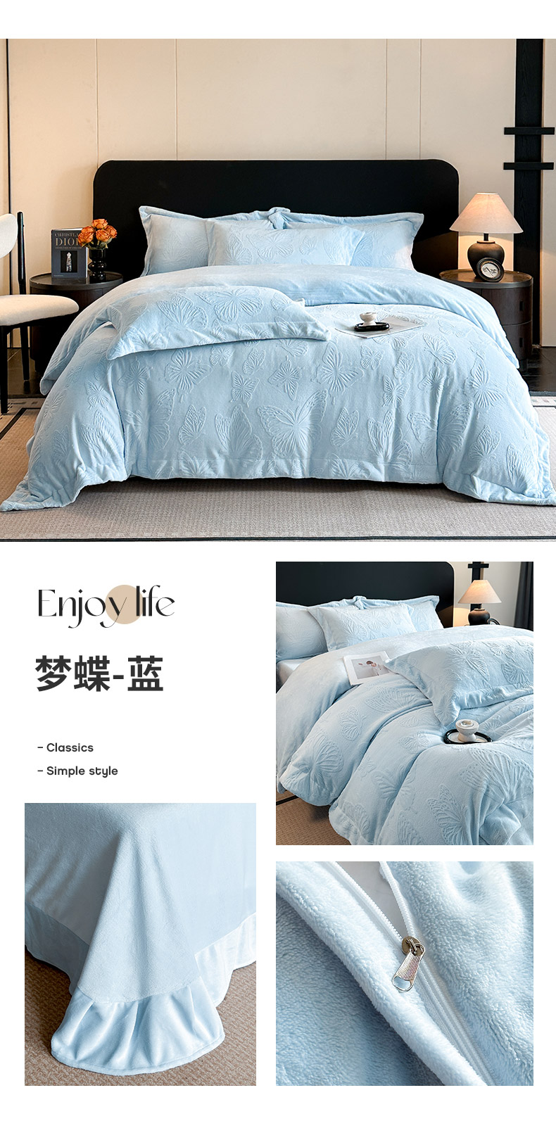 当前位置: 91家纺网 > 商品网购 > 床品套件 > 四件套 > 牛奶绒四件套 > 金阳光家纺 2025新款A类立体雕花牛奶绒轻奢风牛奶绒四件套-梦蝶 梦蝶-蓝
