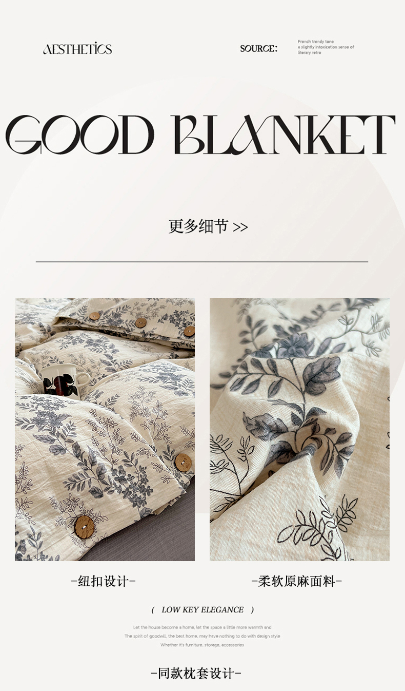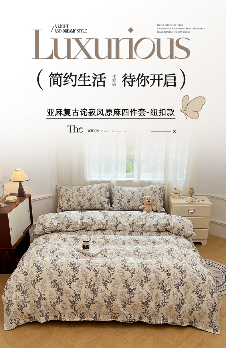 当前位置: 91家纺网 > 商品网购 > 床品套件 > 四件套 > 其它四件套 > 优尚佳生活馆 2025秋冬新款高克重亚麻复古侘季风复麻系列四件套 浅枝墨语