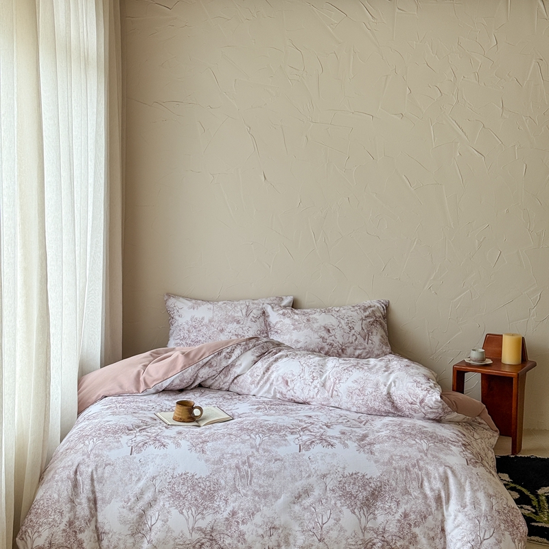 窝米 2020春夏新品全棉13372四件套小波西风系列 木槿,木槿