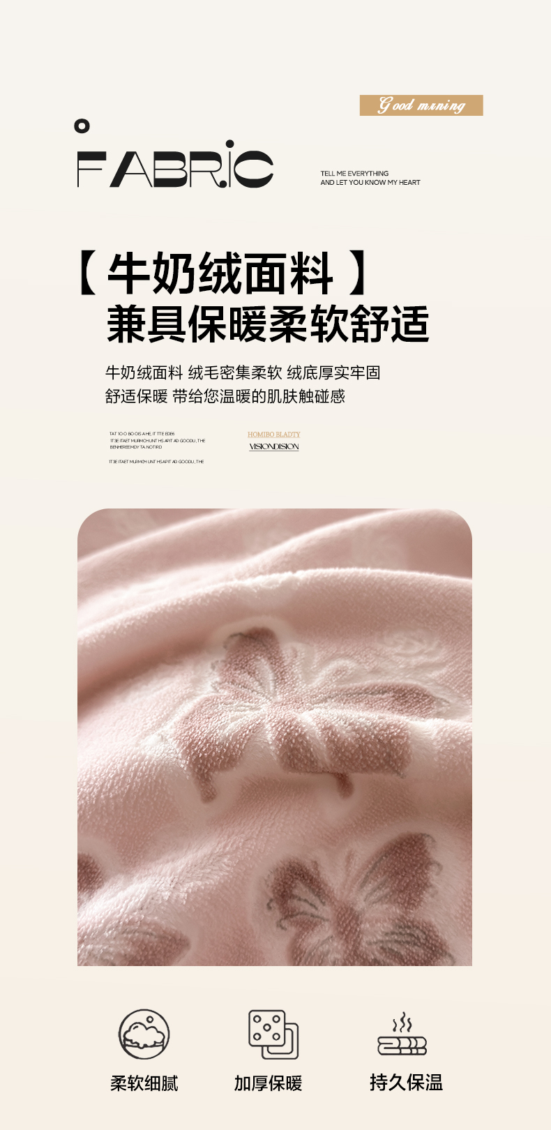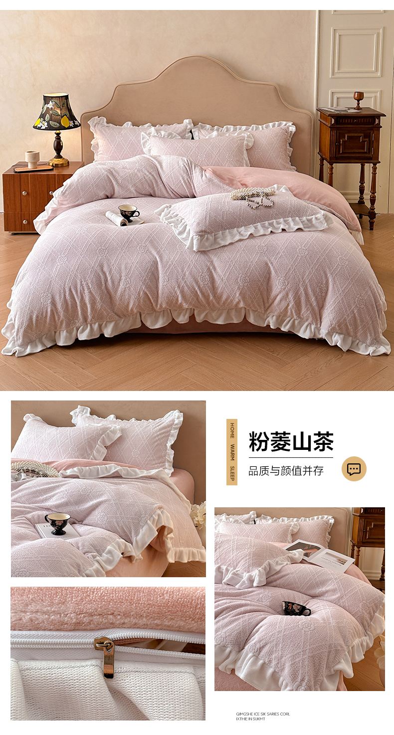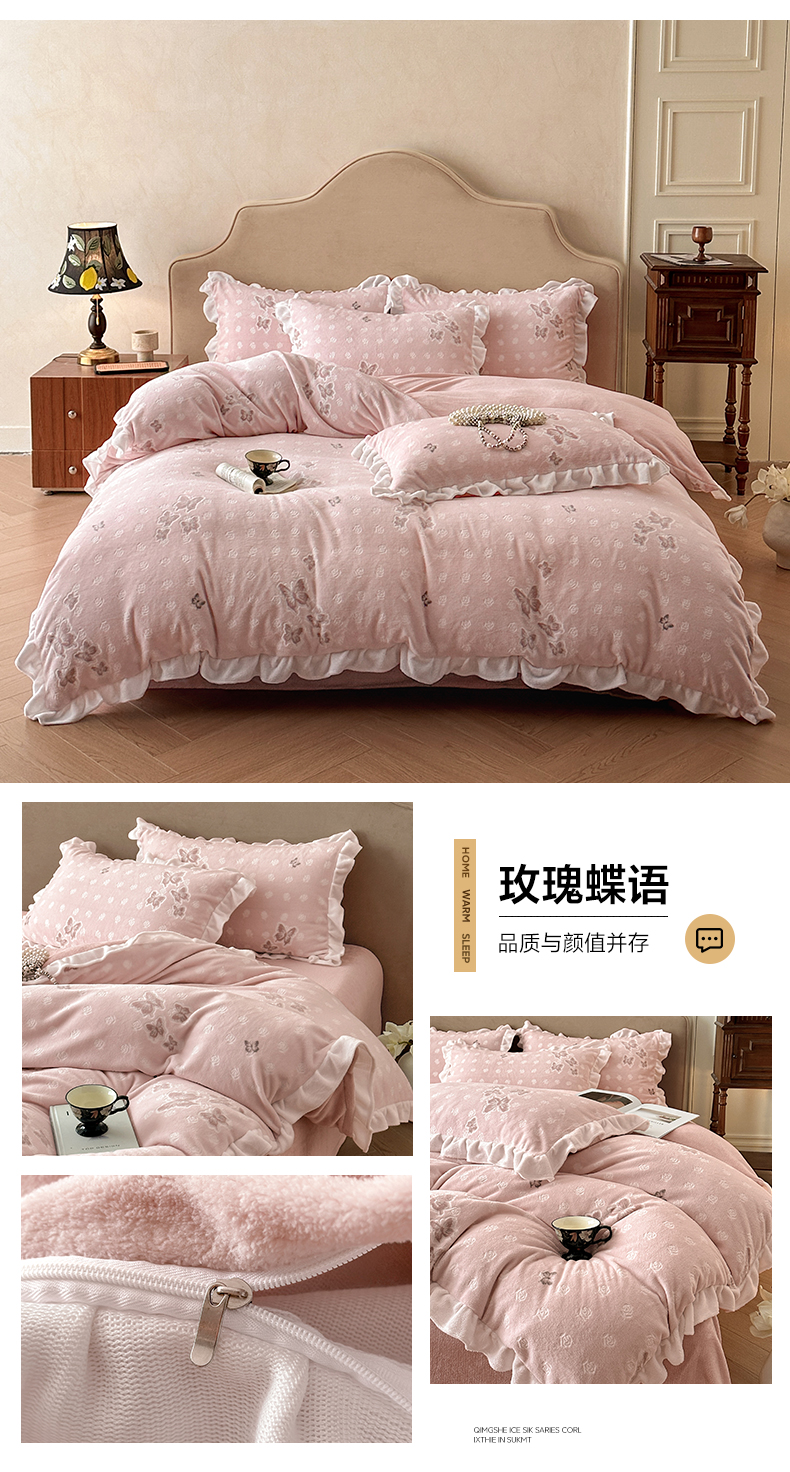 澳梵家居 2025新款雕花牛奶绒韩版四件套-玫瑰蝶语 粉菱山茶