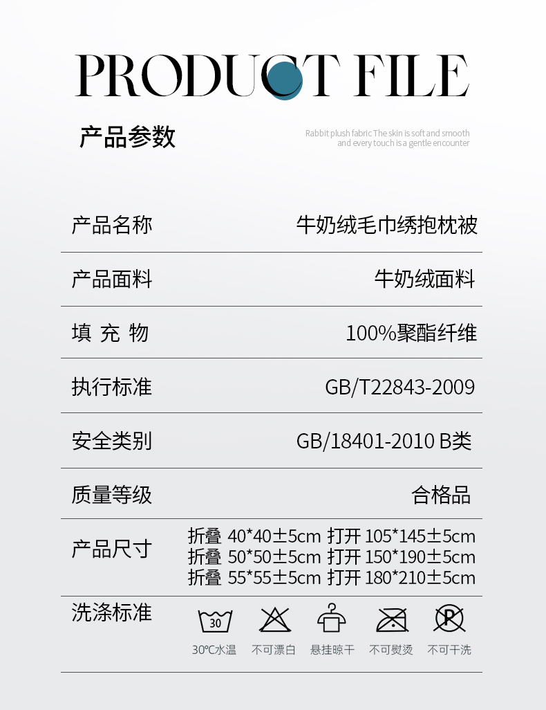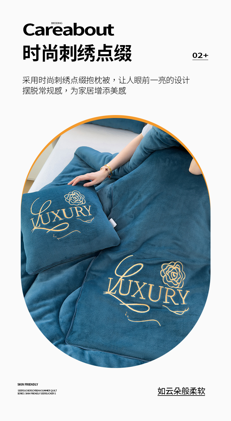 (总)吉利家居 2024新款全棉绣花抱枕被(四季款),宝石蓝,高级灰,红豆沙,湖绿色,灰绿,孔雀蓝,暖炉橙,雾霾灰