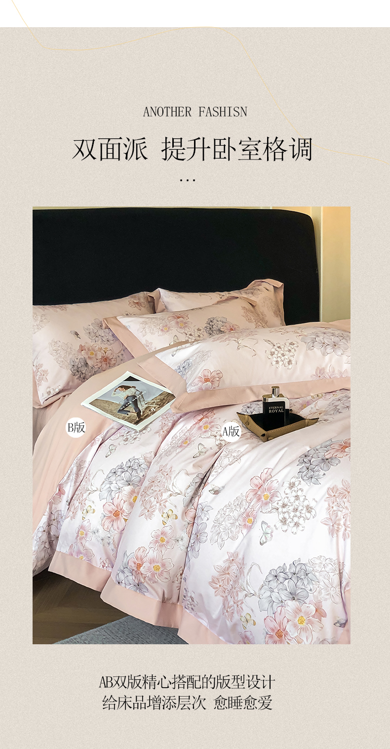 (总)薏思家纺 2025新款全棉100支数码印花生态磨毛轻奢款四件套-珍珠纽扣系列,花弄影-青,花弄影-玉,花弄影-紫,紫纱春日