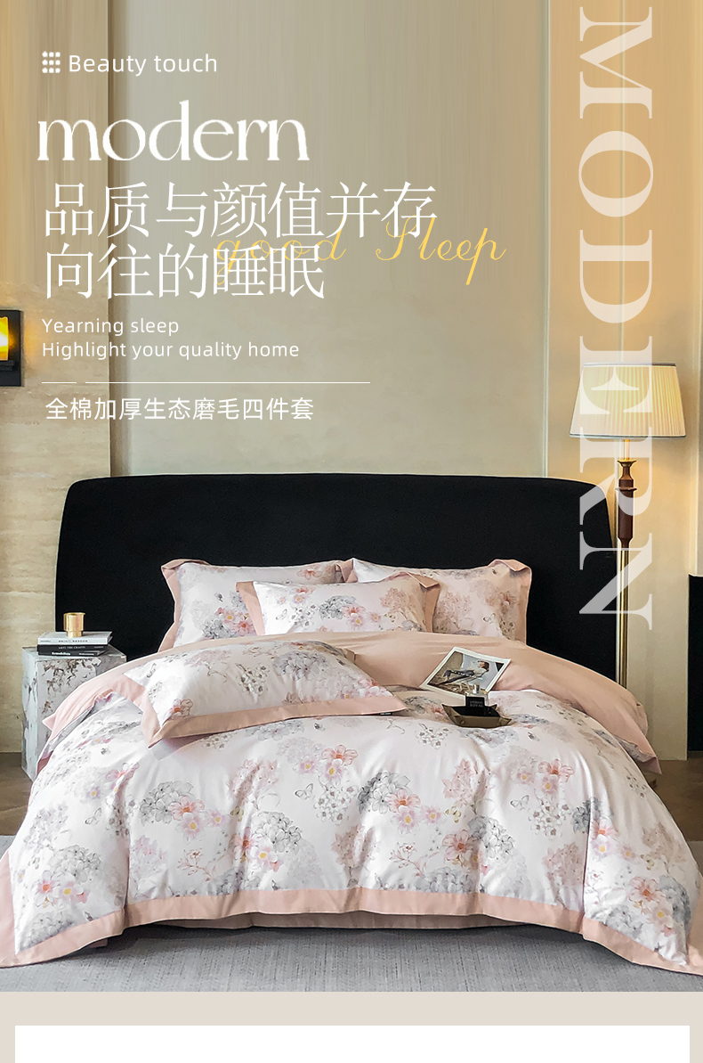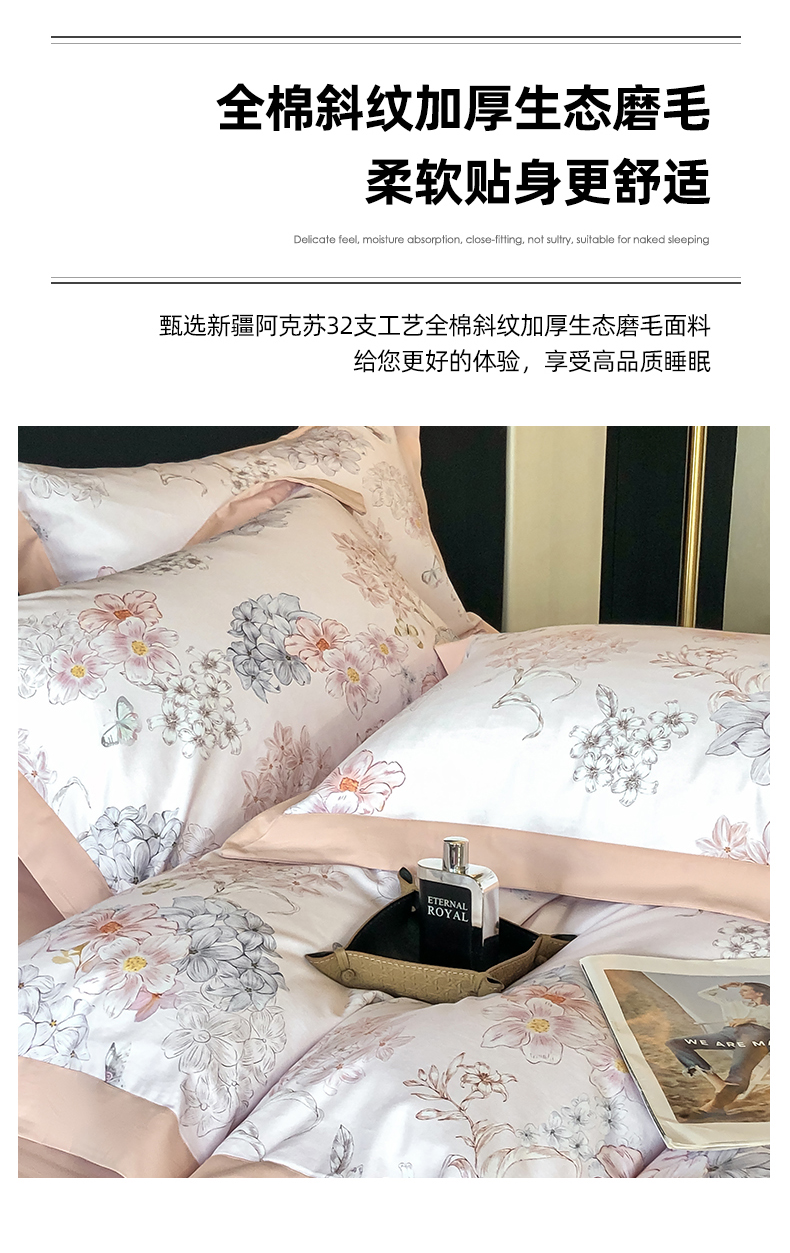 (总)薏思家纺 2025新款全棉纯棉数码印花双宽边磨毛四件套-繁花,春光郁金粉,花茉里-米白,克洛伊粉,克洛伊灰,暮光幽紫,蔷薇之恋,恬觅,温婉粉,舞 绿,心柔-绿,叶伴花香