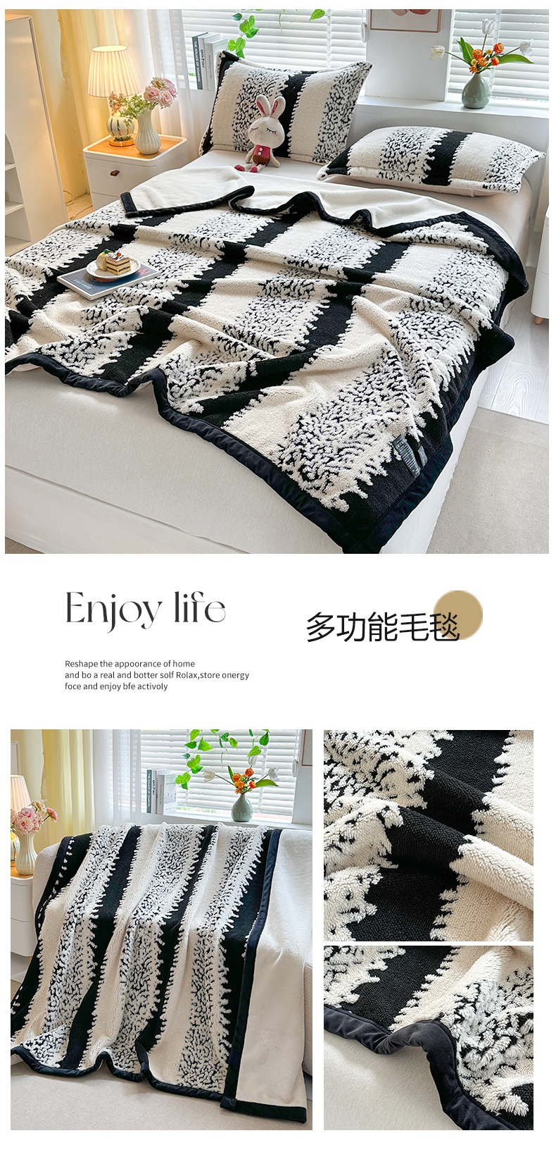 商品名称:雅诗帛 2025新款黑白阳离子复合多功能毛毯 爱心花朵