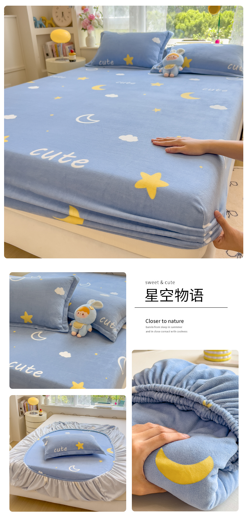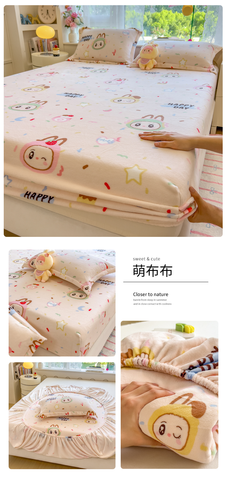 (总)丝羽坊 2025新款印花小清新牛奶绒印花床笠三件套,甜心猫,草莓洋娃娃,花的邂逅,公主兔兔,花间密语,卡皮巴拉,曼妙时光,萌布布,圈圈点点,星空物语,布丁犬,小美好,幸运小狗