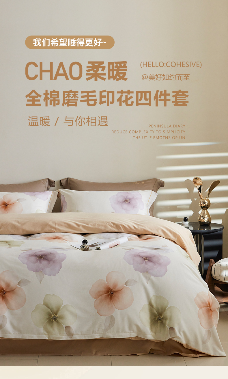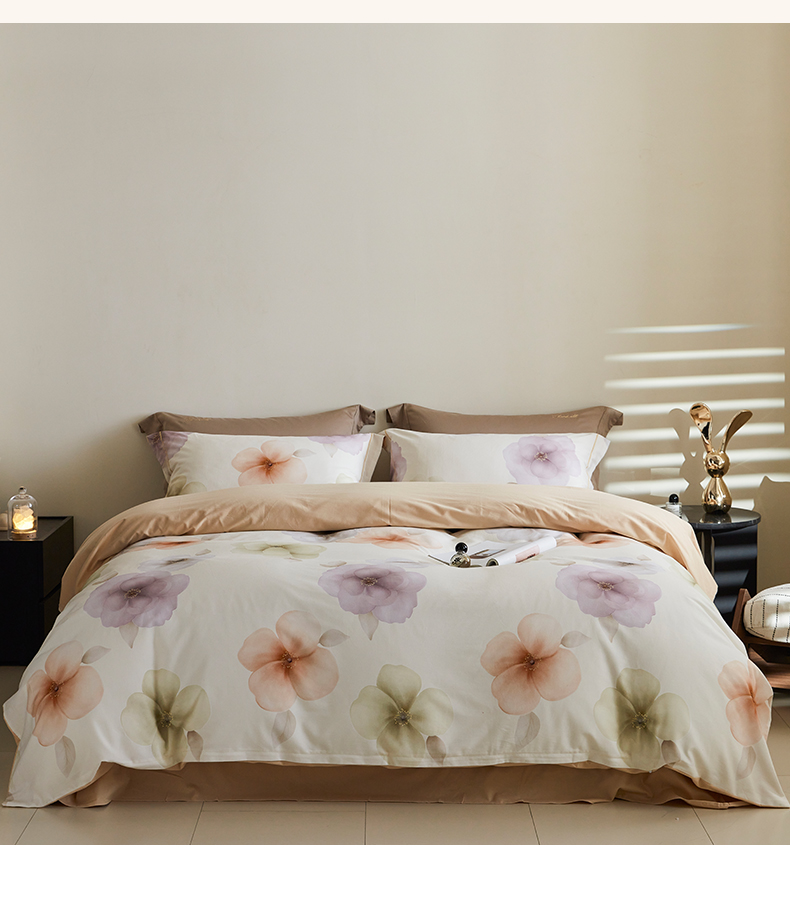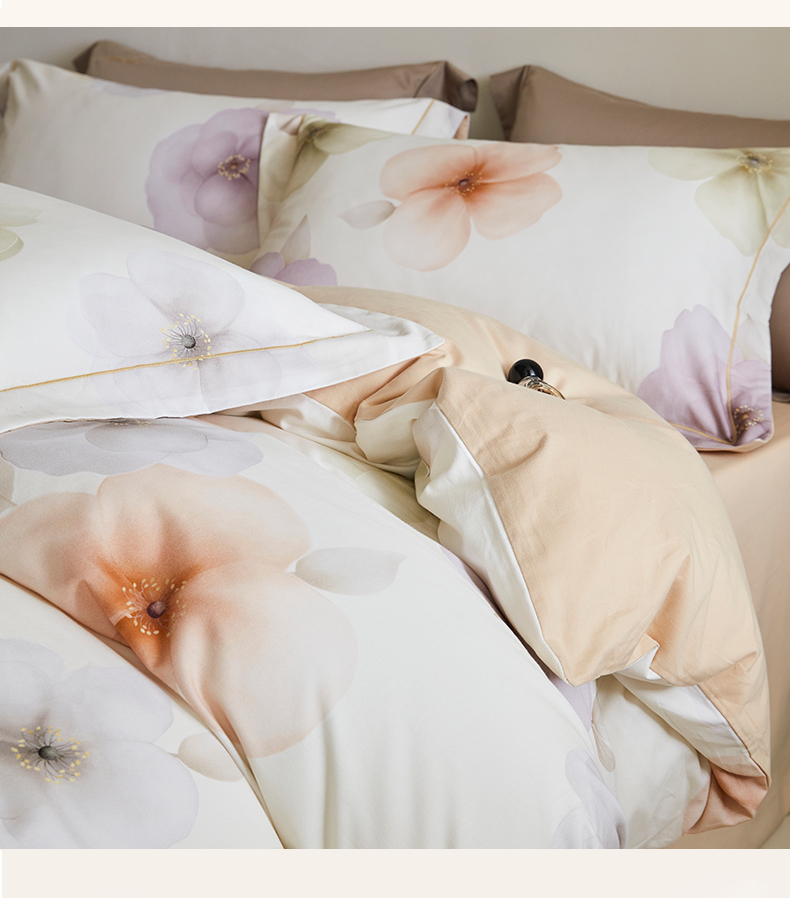 当前位置: 91家纺网 > 商品网购 > 床品套件 > 四件套 > 全棉普通四件套 > 嘉汀兰家居 2025新款全棉纯棉数码印花生态磨毛四件套 繁花桔