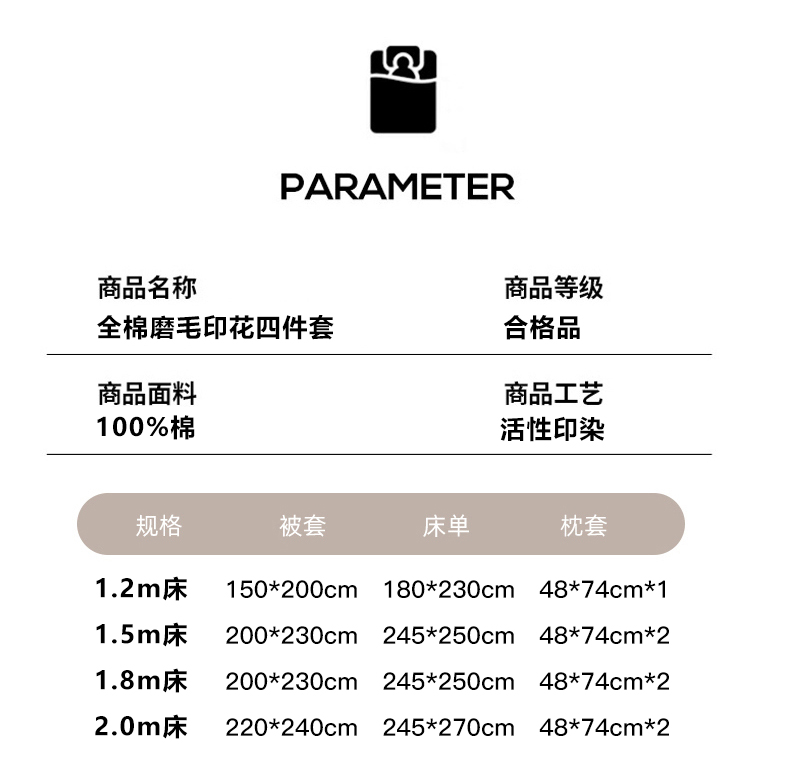 【床笠款】1.5四件套-被套200x230 | ¥155.00 |