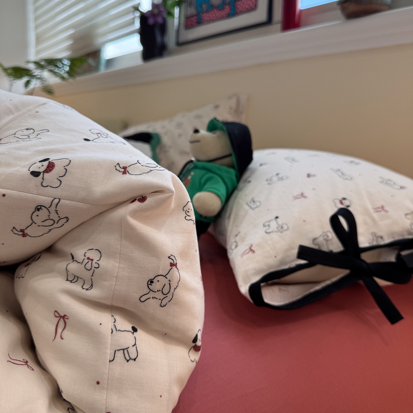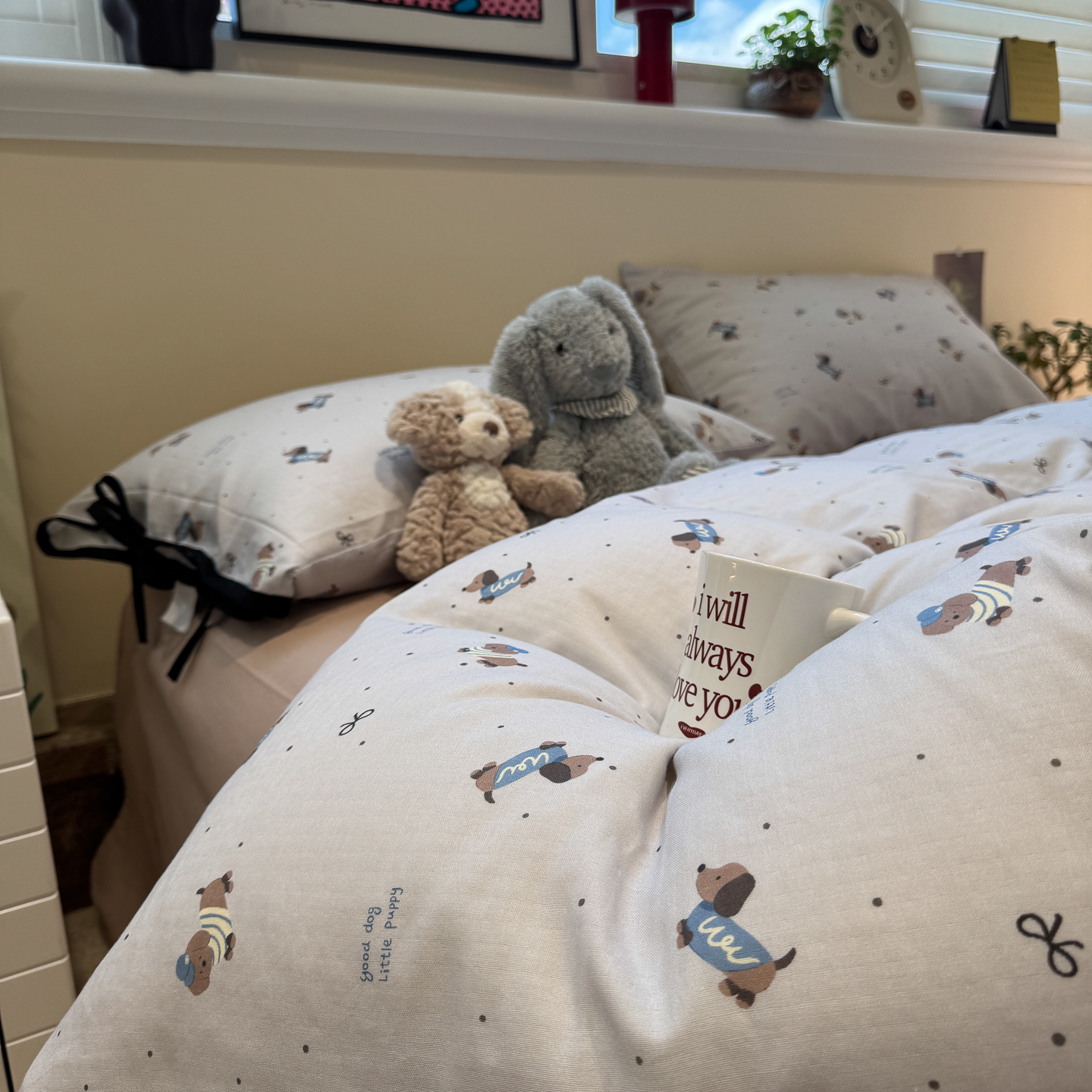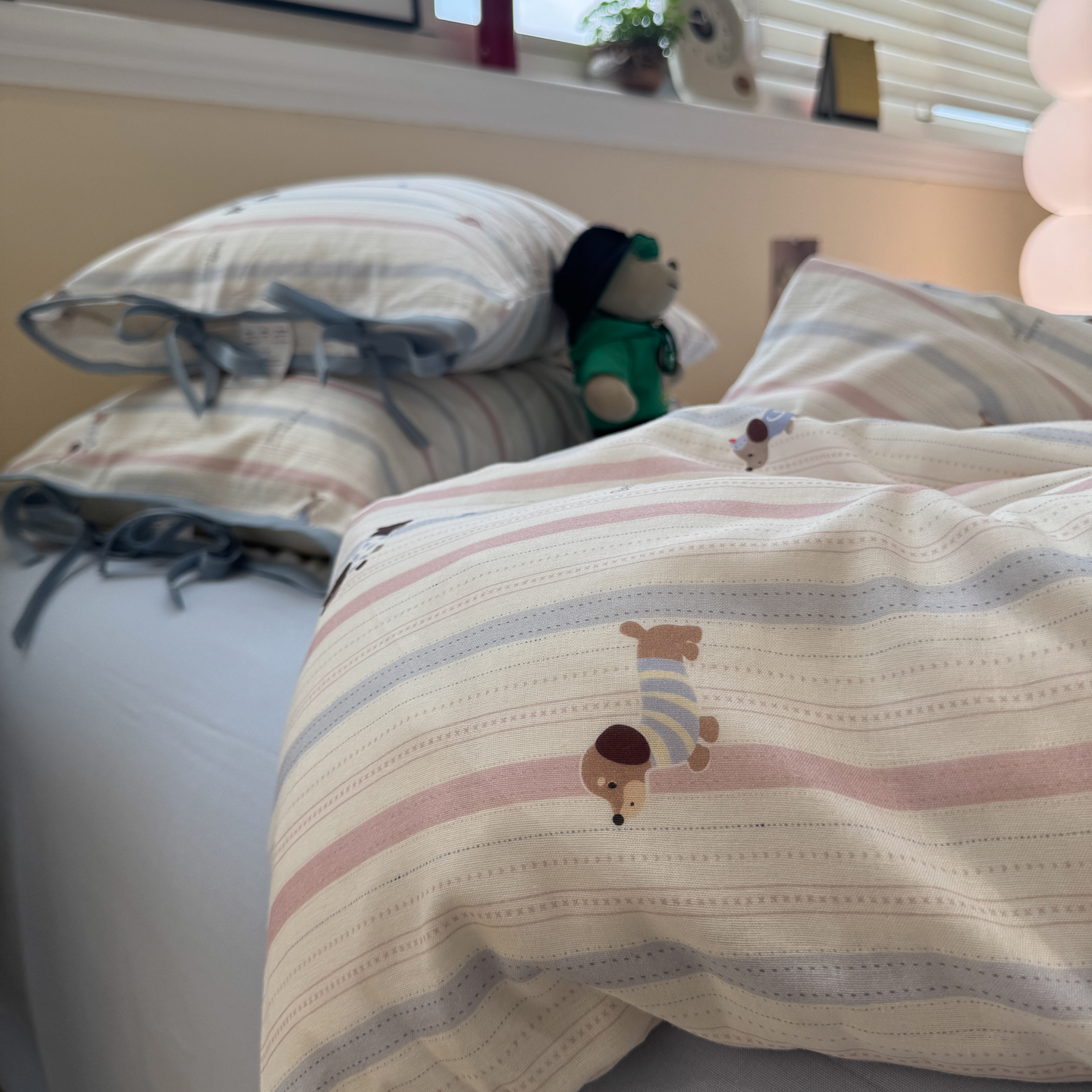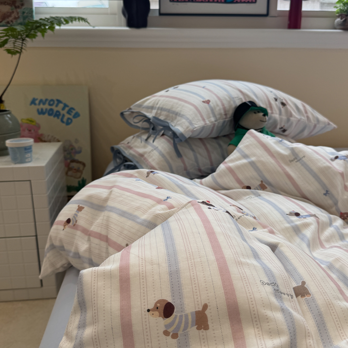 当前位置: 91家纺网 > 商品网购 > 床品套件 > 四件套 > 全棉普通四件套 > 慕尚家纺 2025新款全棉母婴级双层纱四件套 蝴蝶结绑带款-帽子腊肠