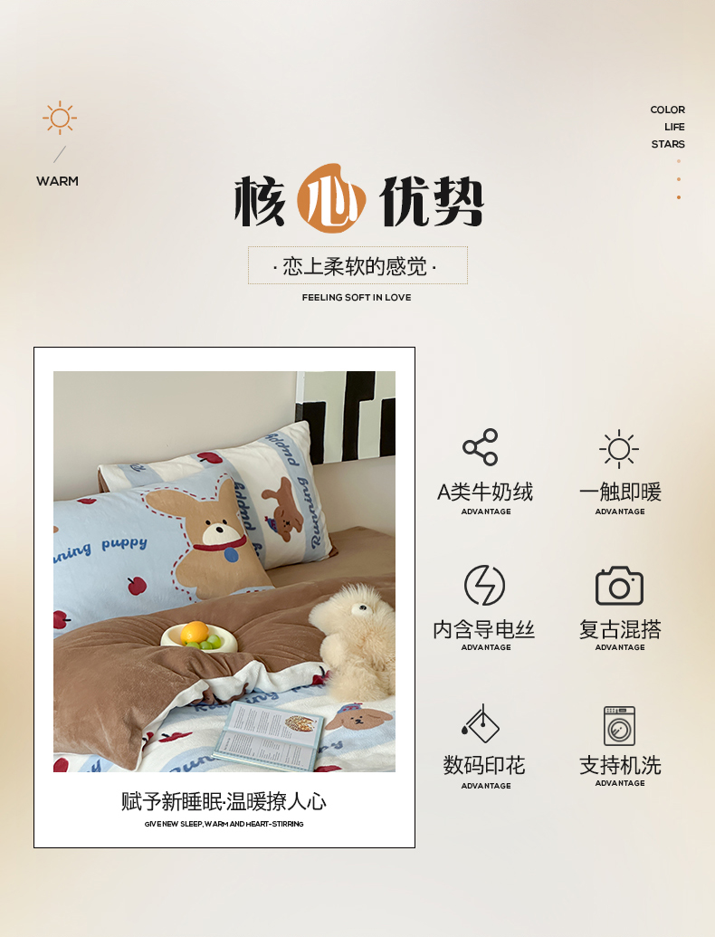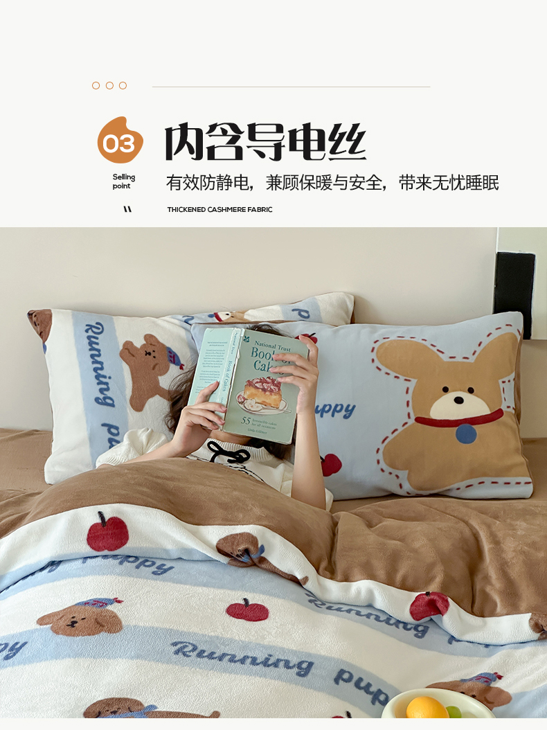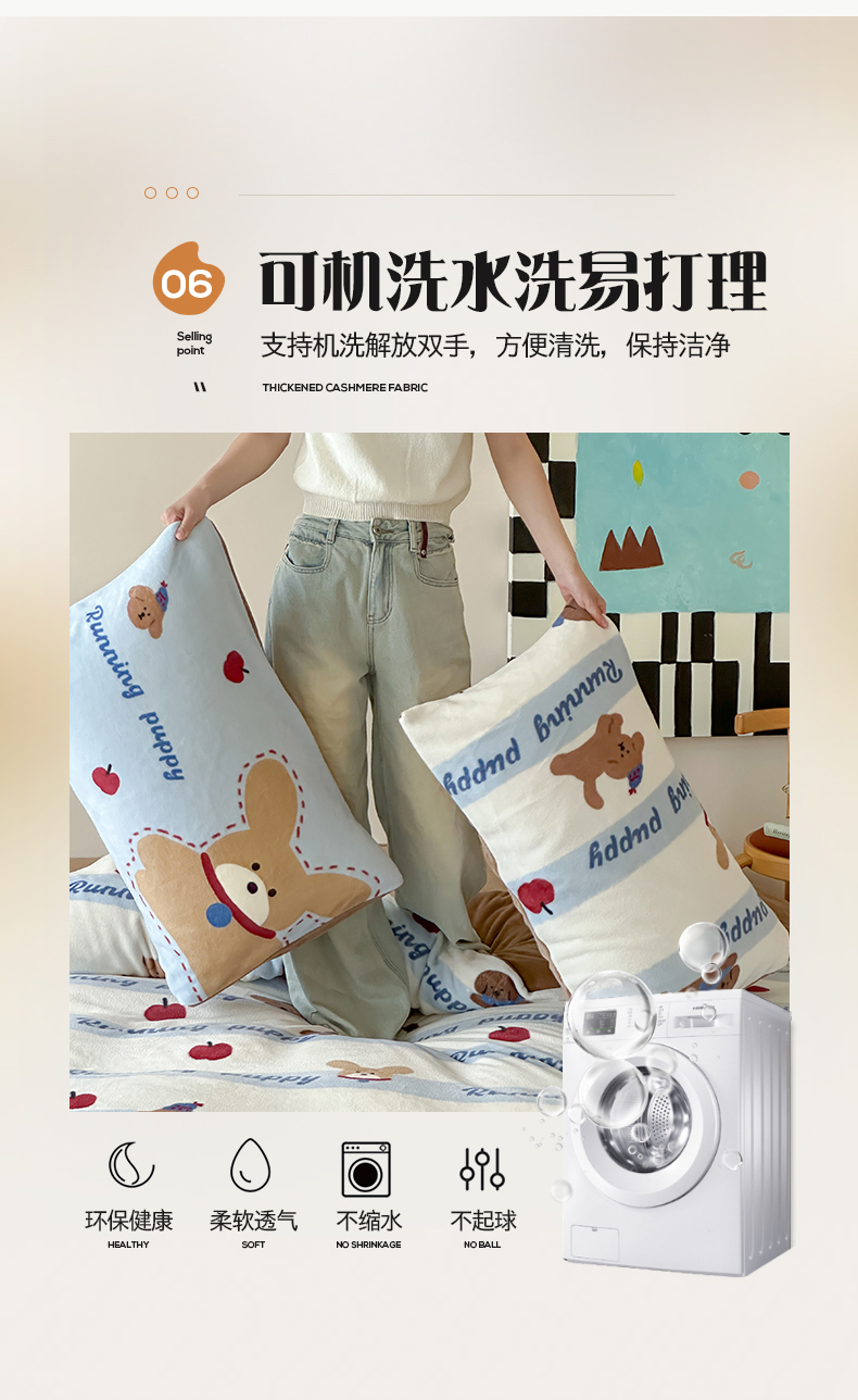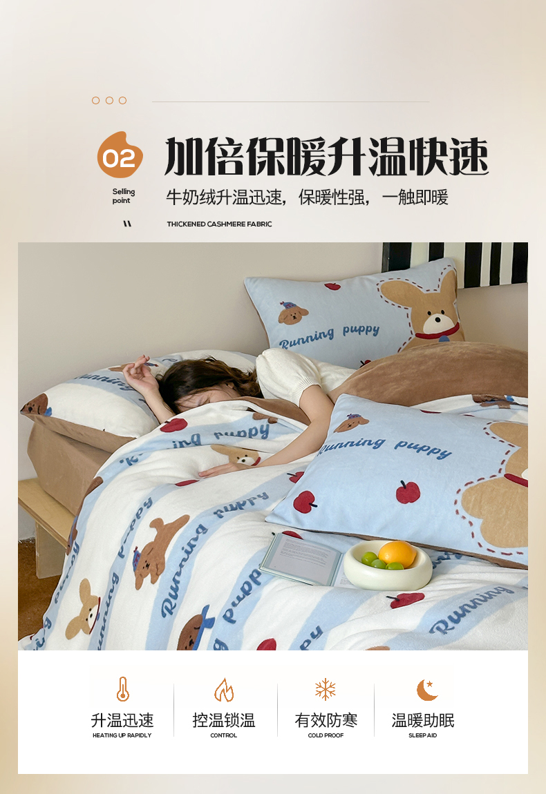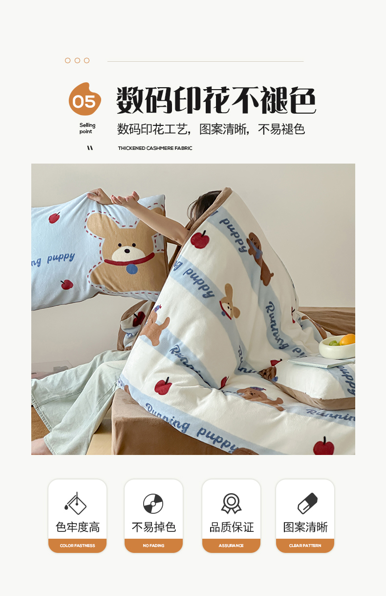 商品名称:桃子家居 2025新款A类ins数码印花枕混搭复古时尚卡通加厚牛奶系列四件套 绒-混搭俏皮狗蓝
