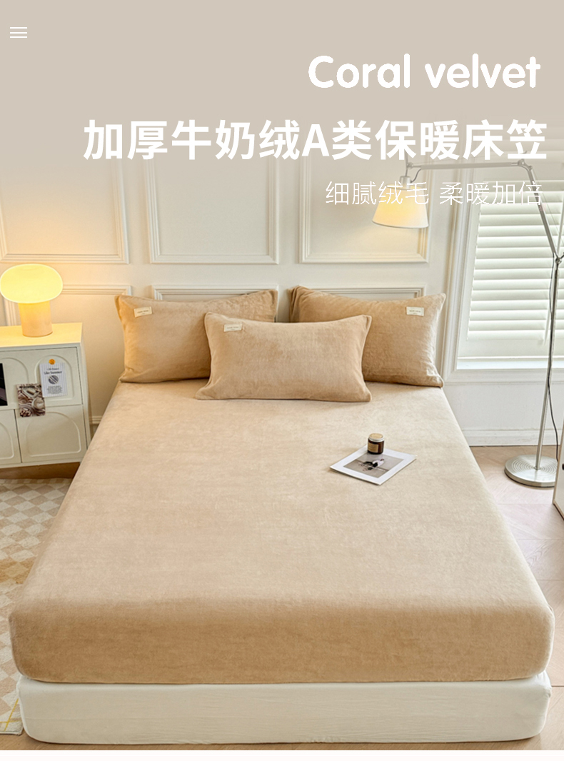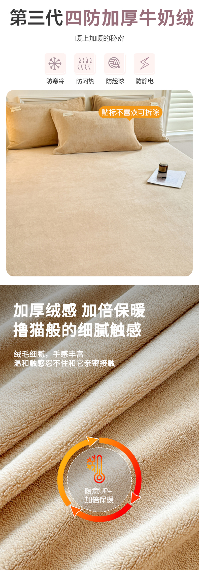 • 91家纺网 家纺一手货源 找家纺 眠博士 2025新款简约牛奶绒纯色单床笠 牛奶绒床笠-暖咖