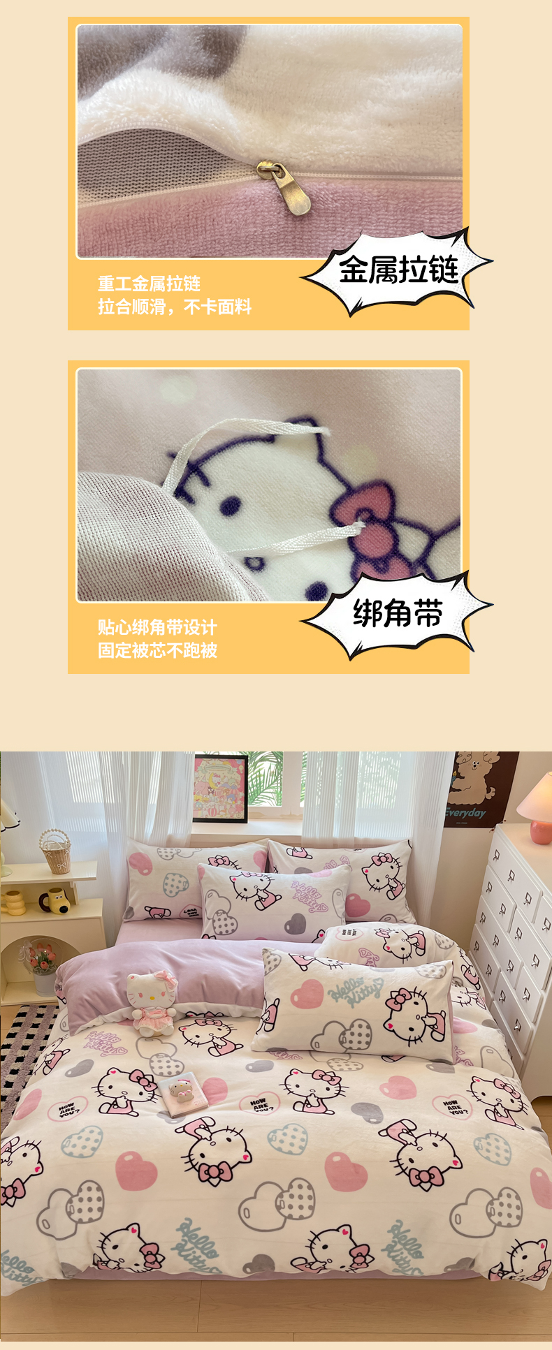 商品名称:(总)三朵家纺 2025新款三丽鸥印花牛奶绒四件套