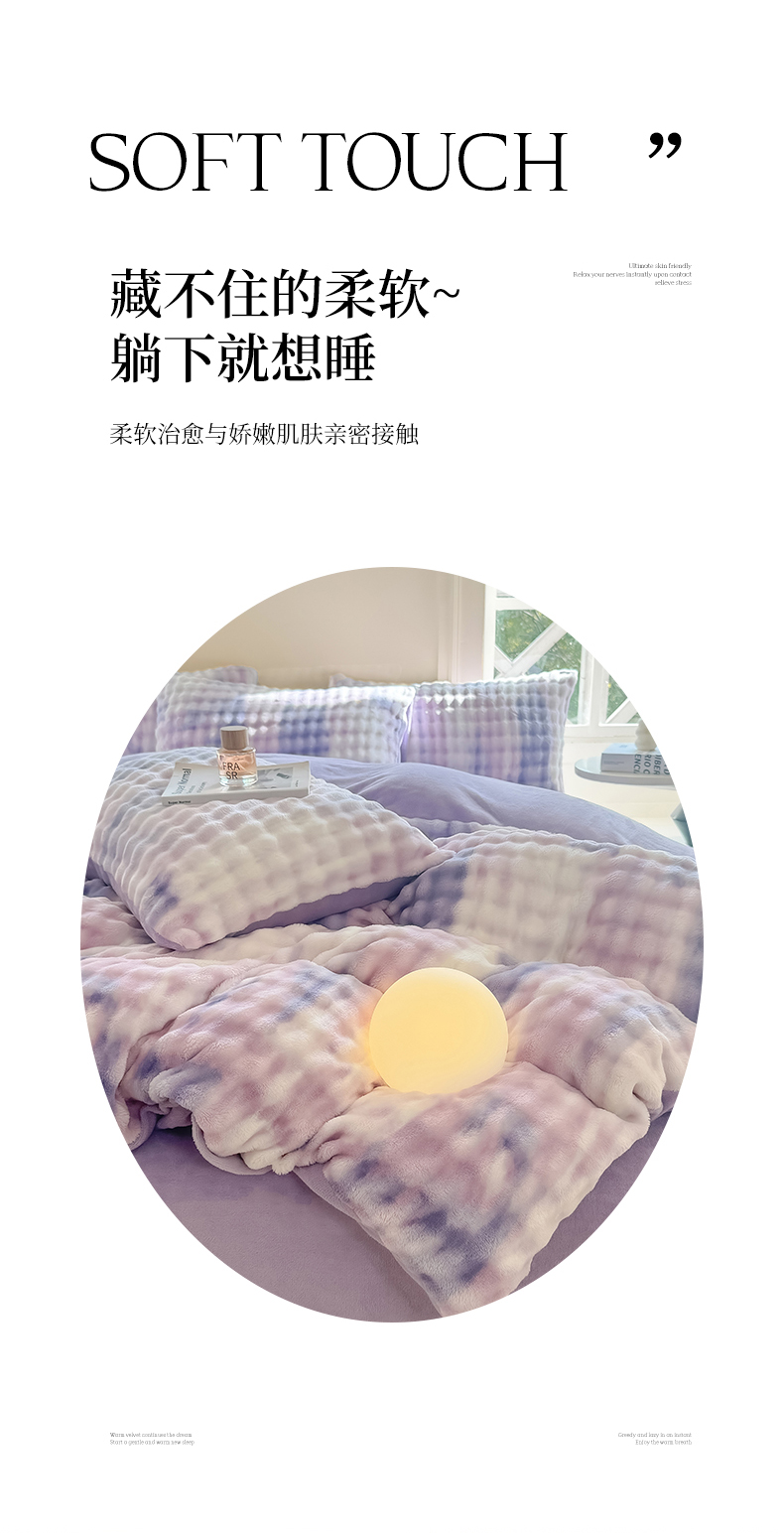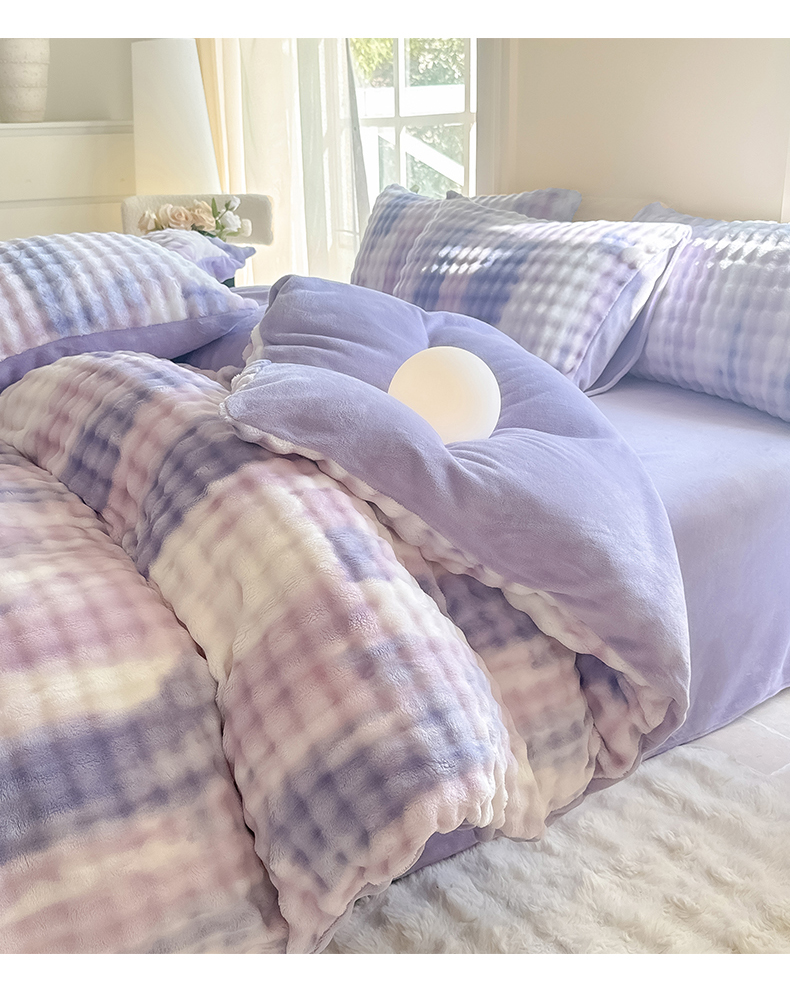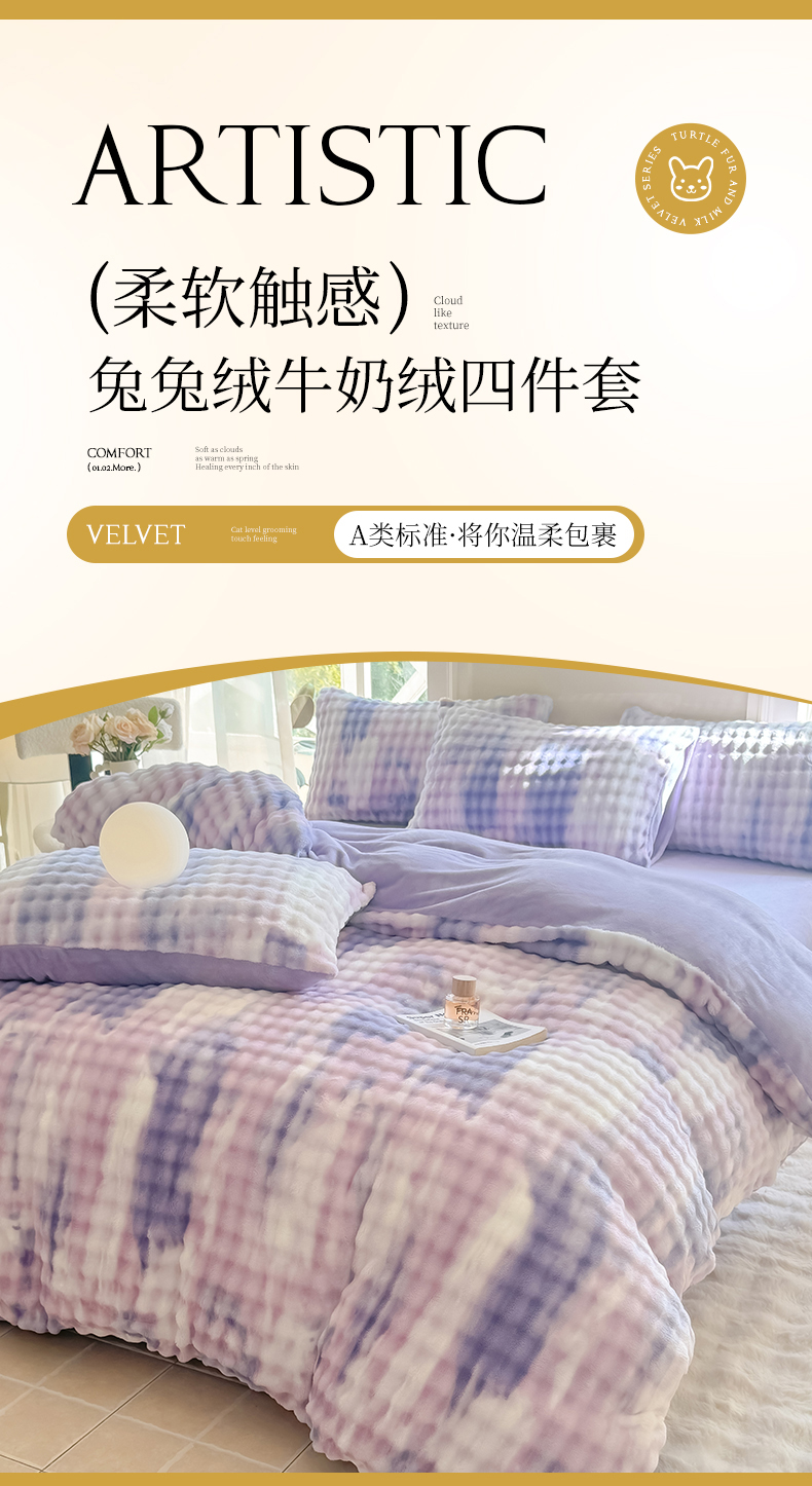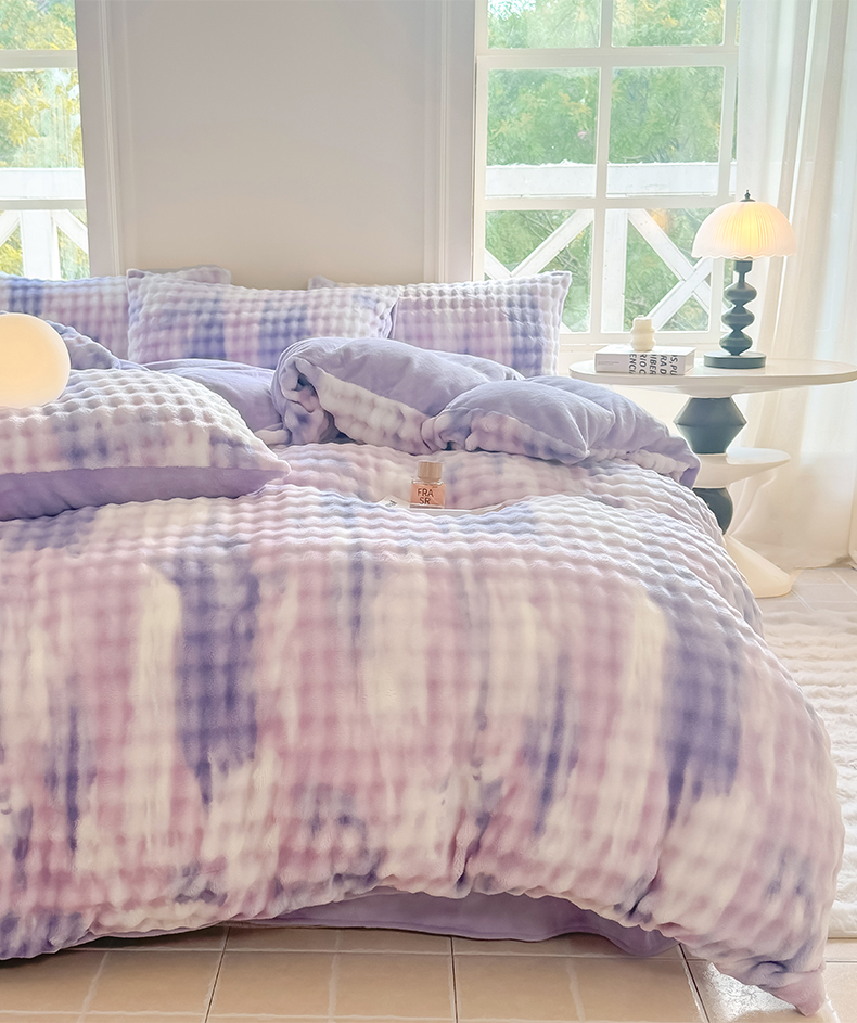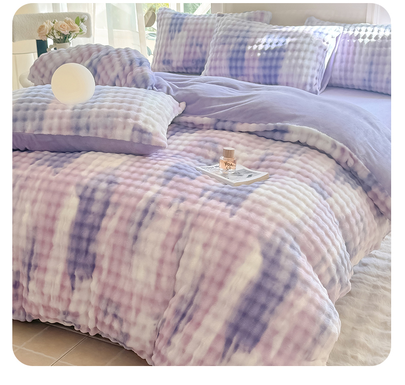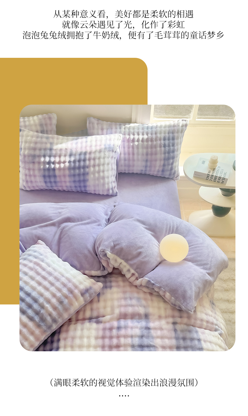 当前位置: 91家纺网 > 商品网购 > 床品套件 > 四件套 > 其它四件套 > 品乐家纺 2025新款简约纯色A类220克泡泡兔绒四件套 渐变-极光紫