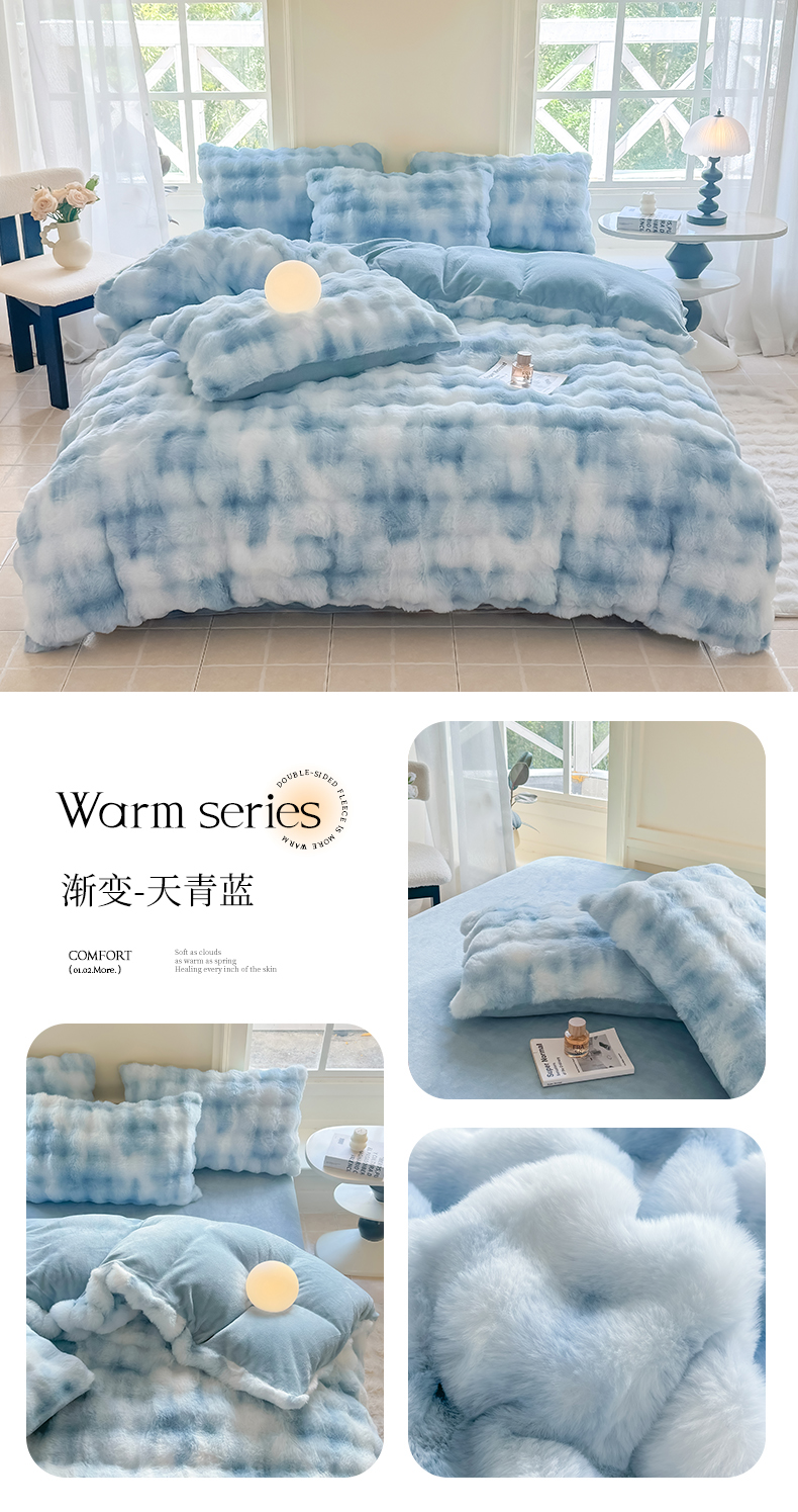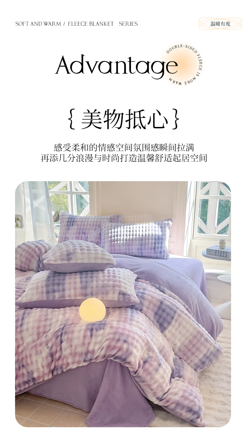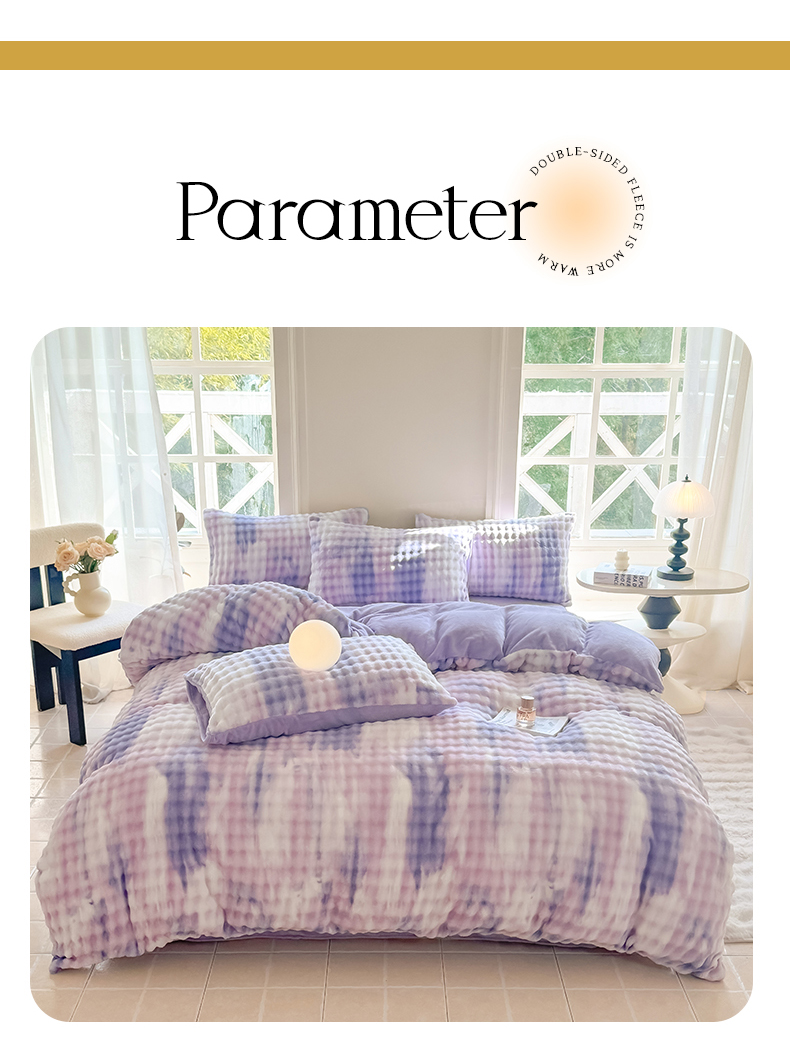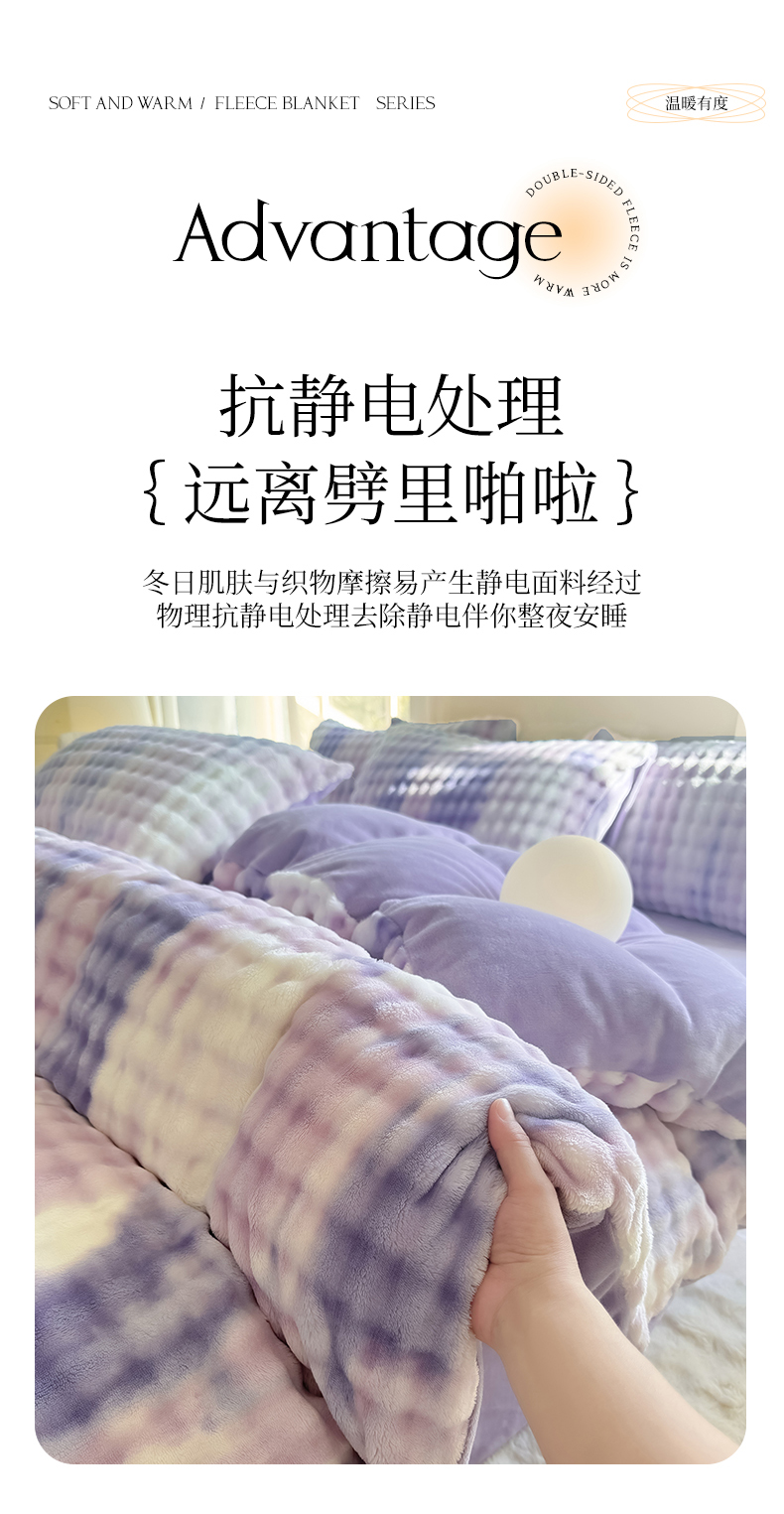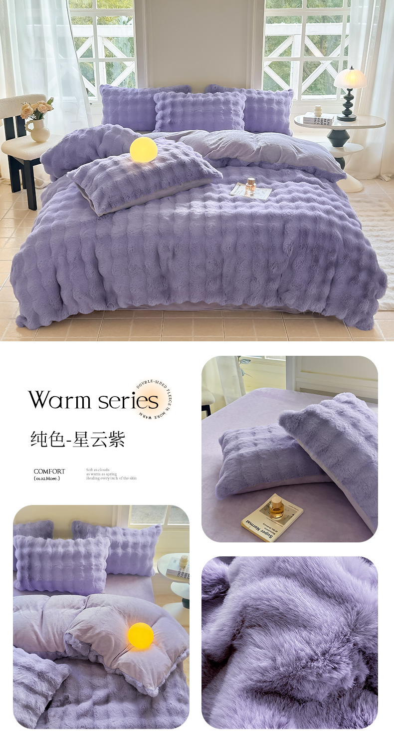 当前位置: 91家纺网 > 商品网购 > 床品套件 > 四件套 > 其它四件套 > 品乐家纺 2025新款简约纯色A类220克泡泡兔绒四件套 渐变-极光紫