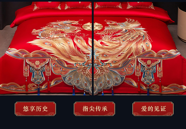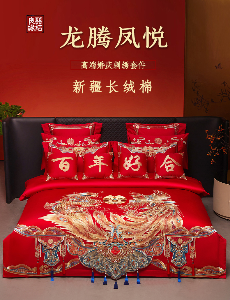 (总)皇潮婚庆馆 新款新疆长绒棉高端婚庆刺绣四件套,龙凤合玺,祥龙禧凤