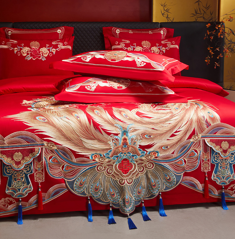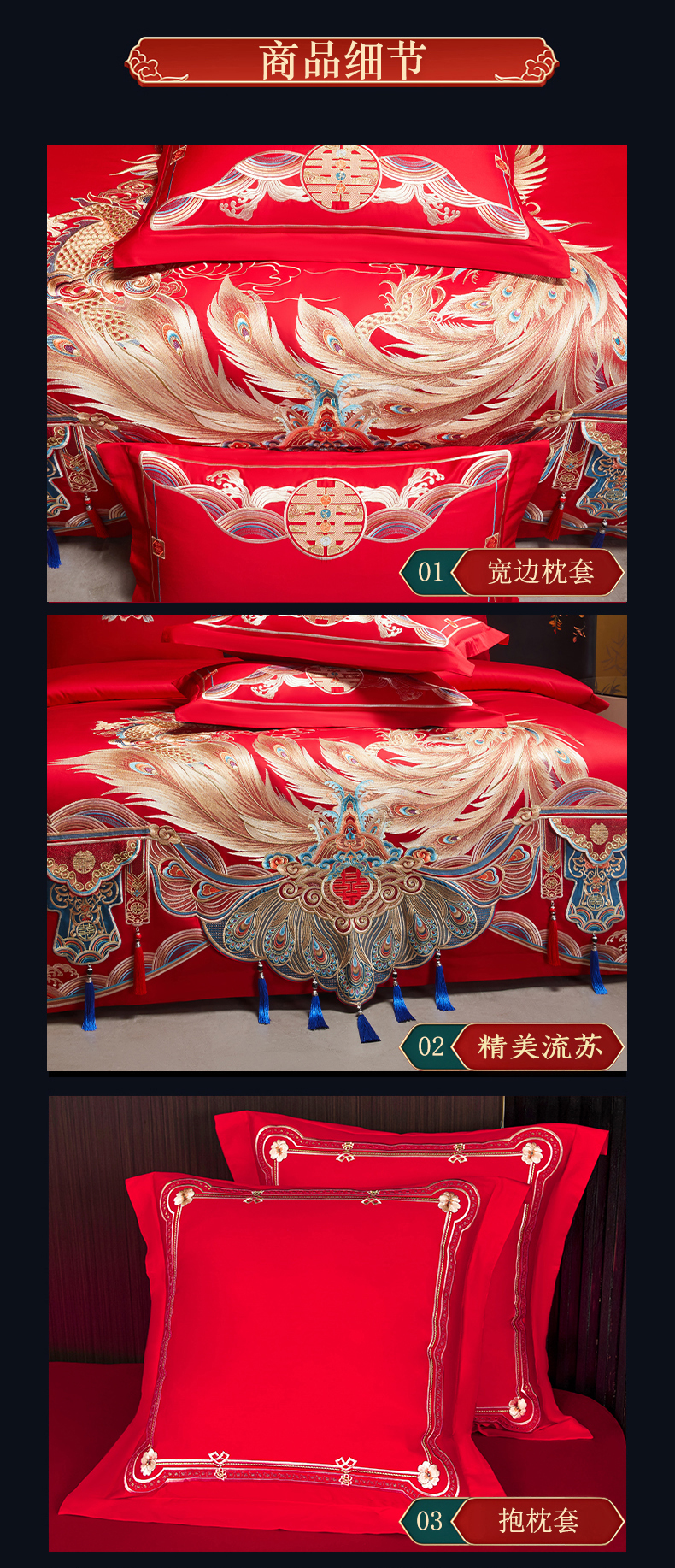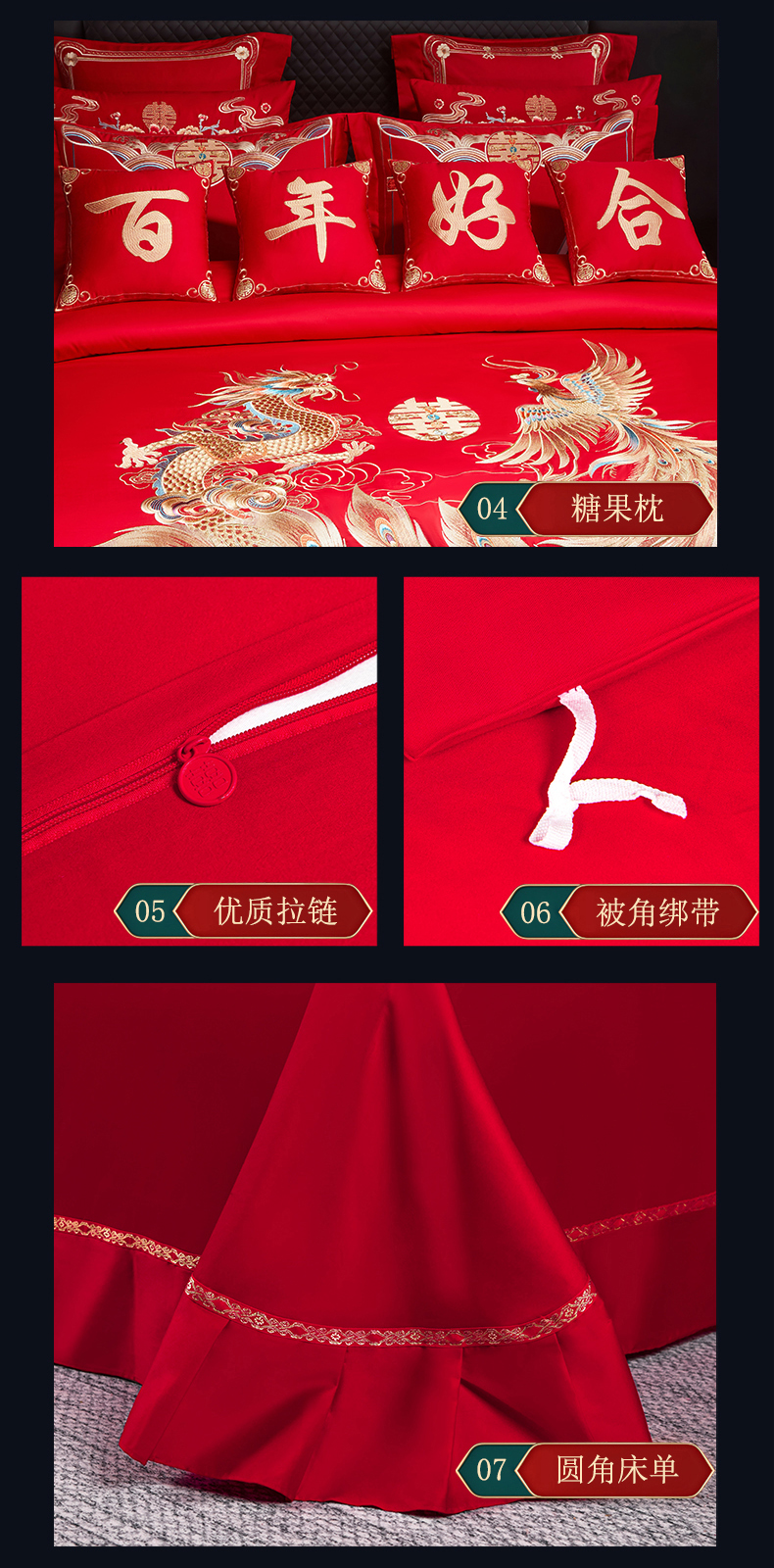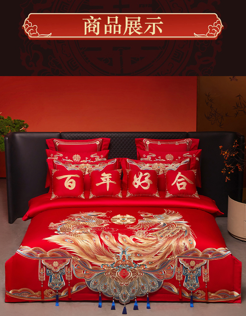 (总)皇潮婚庆馆 2025新款A类布款全棉刺绣婚庆四件套系列,花辰喜盈,百子送喜,龙悦凤鸣,喜事连连,喜迎鸿运