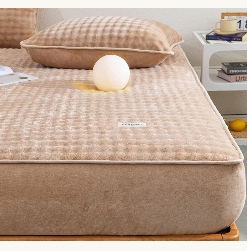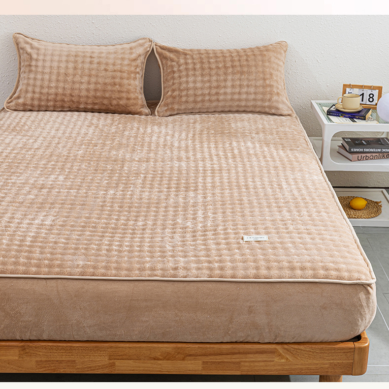 恩和家纺 2025新款泡泡牛奶绒床笠 豆沙粉