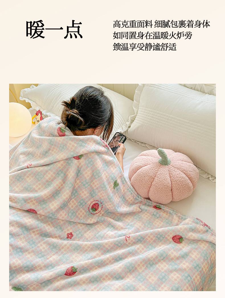 商品名称:初念 2025新款四季款双面牛奶绒多功能毛毯 草莓园