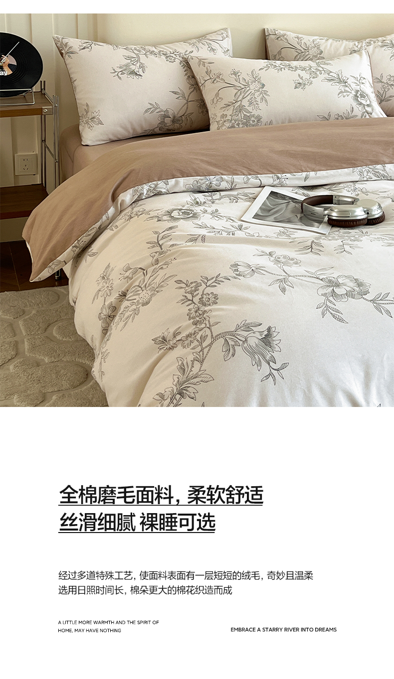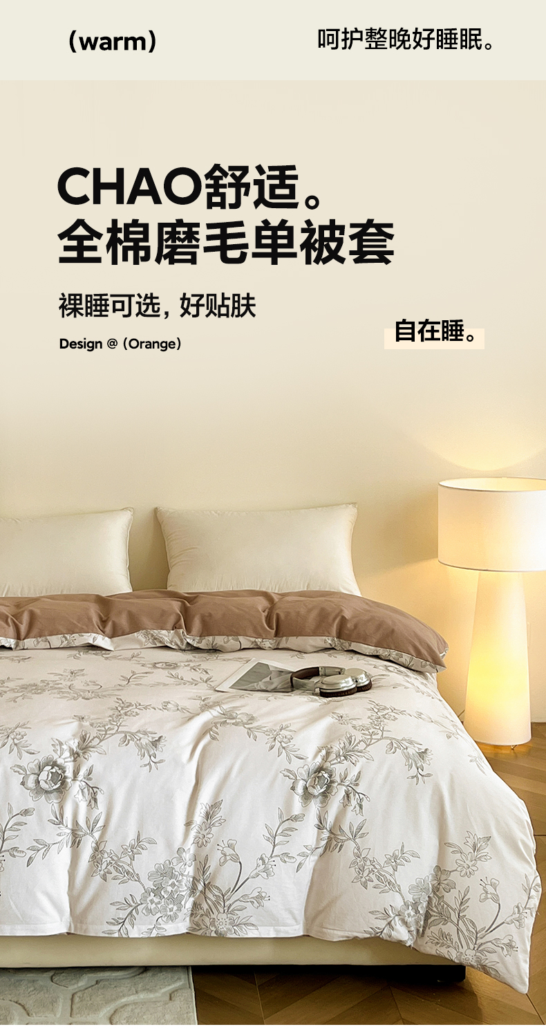商品名称:盛馨家纺 2025新款秋冬百分百全棉纯棉磨毛单双人被套单被套被套单件 暖阳