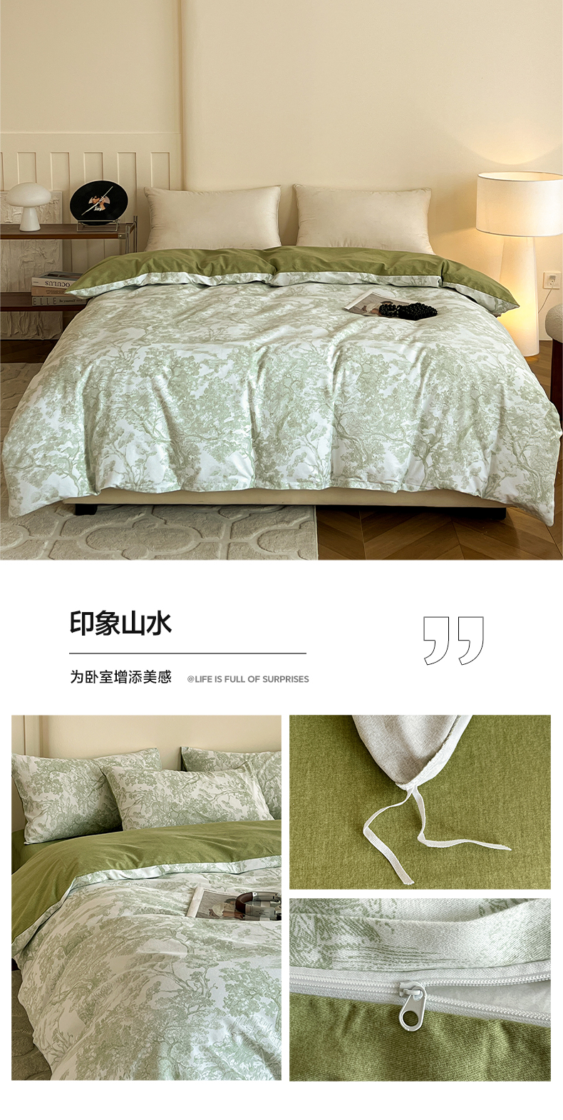 (总)盛馨家纺 2023新款美式田园风全棉四件套,春江花月,大灰格,花语之都兰,恐龙家族绿,麦田印画米,陌上花开兰,鸟语花香,繁花依旧黄,伊卡洛斯灰