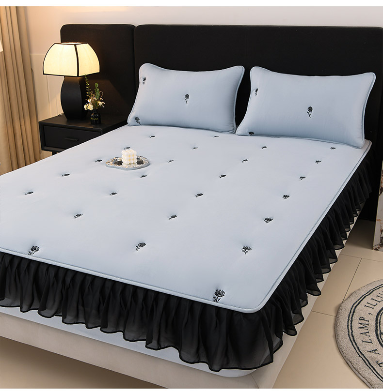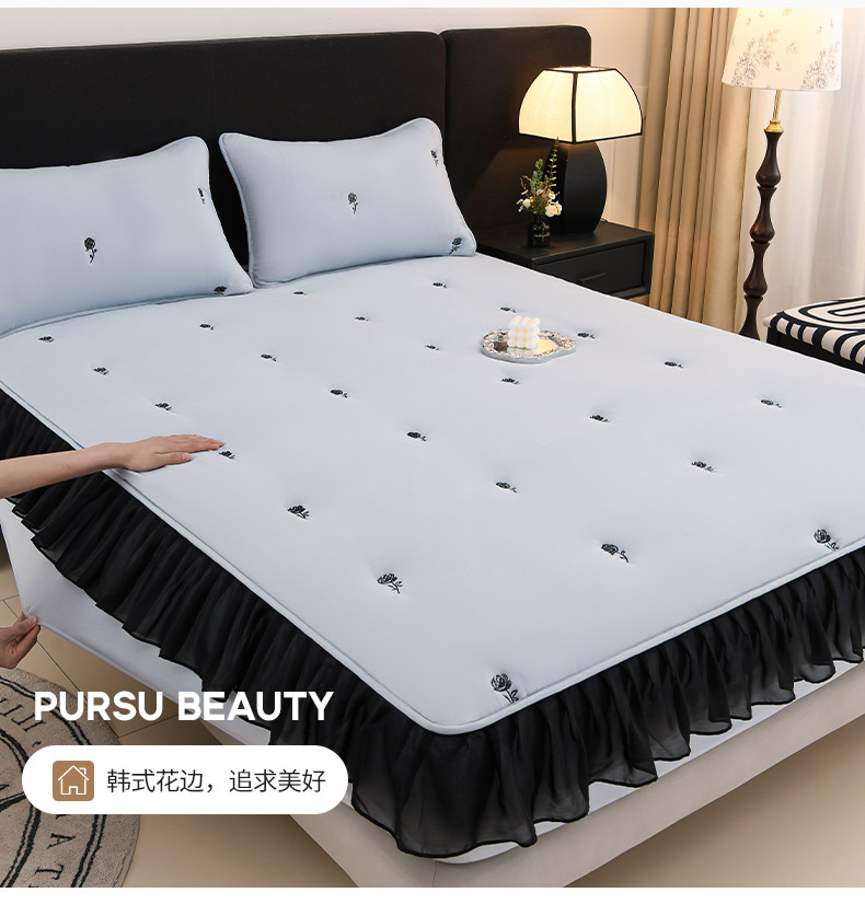 推推家纺 2025新款A类水洗棉花边床笠单品床笠床笠单件 花边款玫瑰-蓝色
