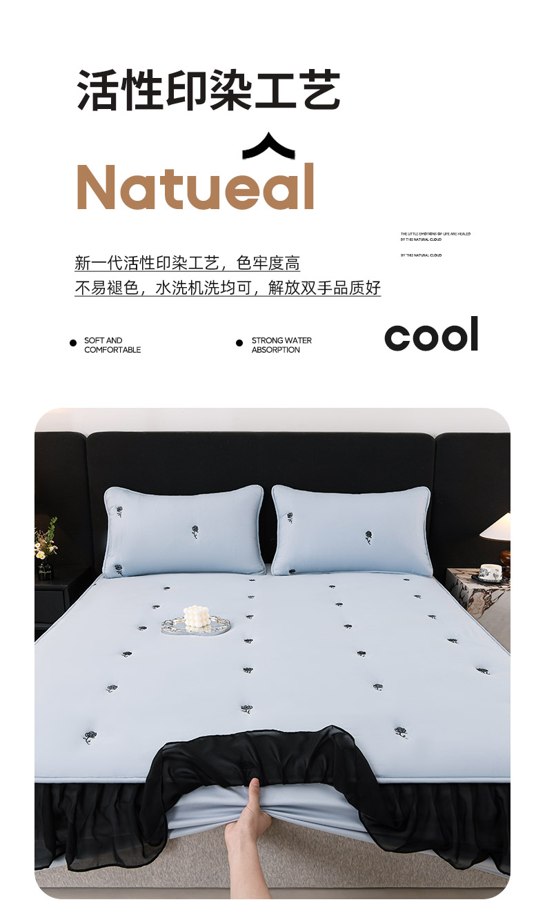 商品名称:推推家纺 2025新款A类水洗棉花边床笠单品床笠床笠单件 花边款玫瑰-蓝色