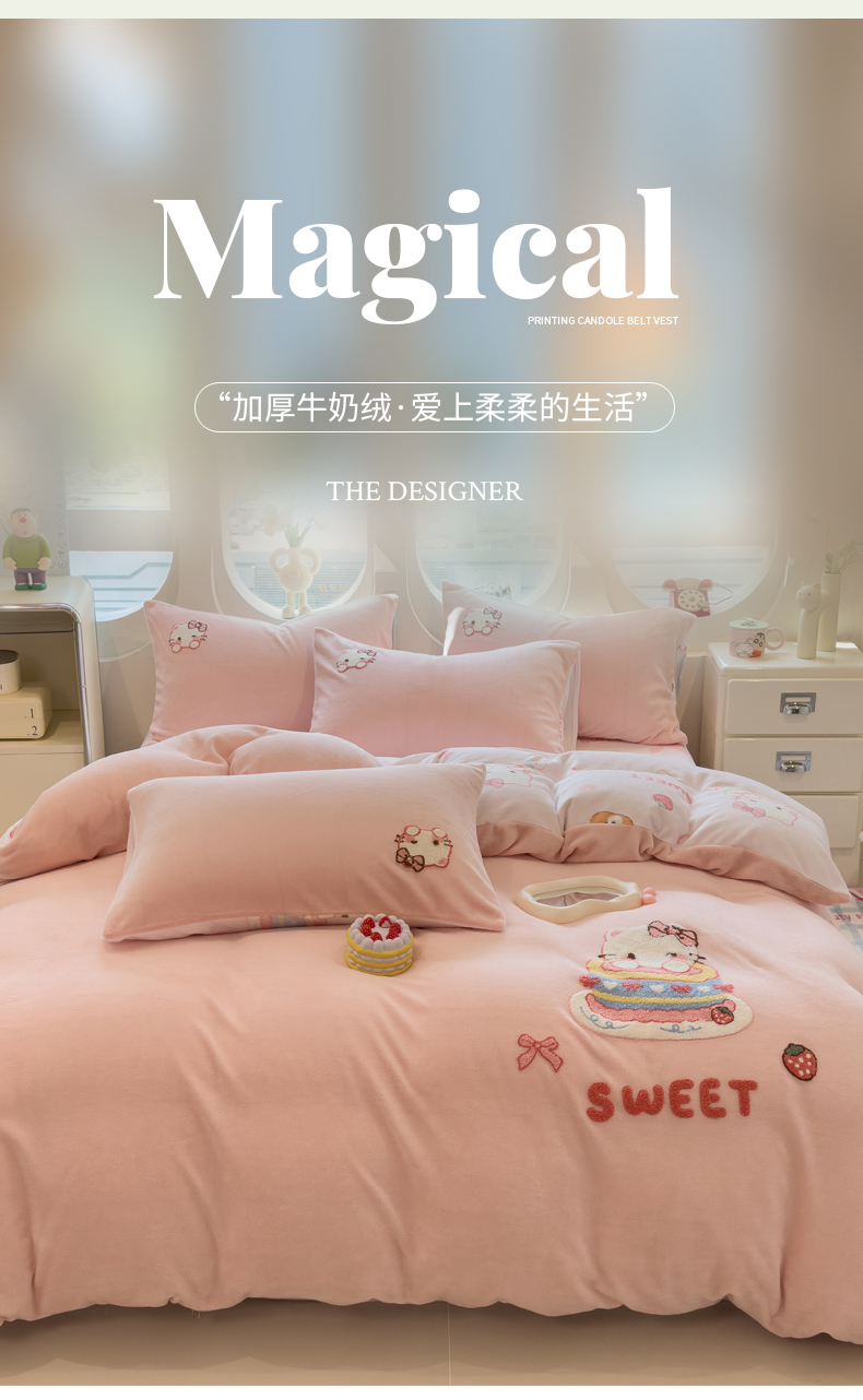 当前位置: 91家纺网 > 商品网购 > 床品套件 > 四件套 > 牛奶绒四件套 > 丝羽坊 2025新款A类潮款加厚牛奶绒四件套 奶芙猫咪