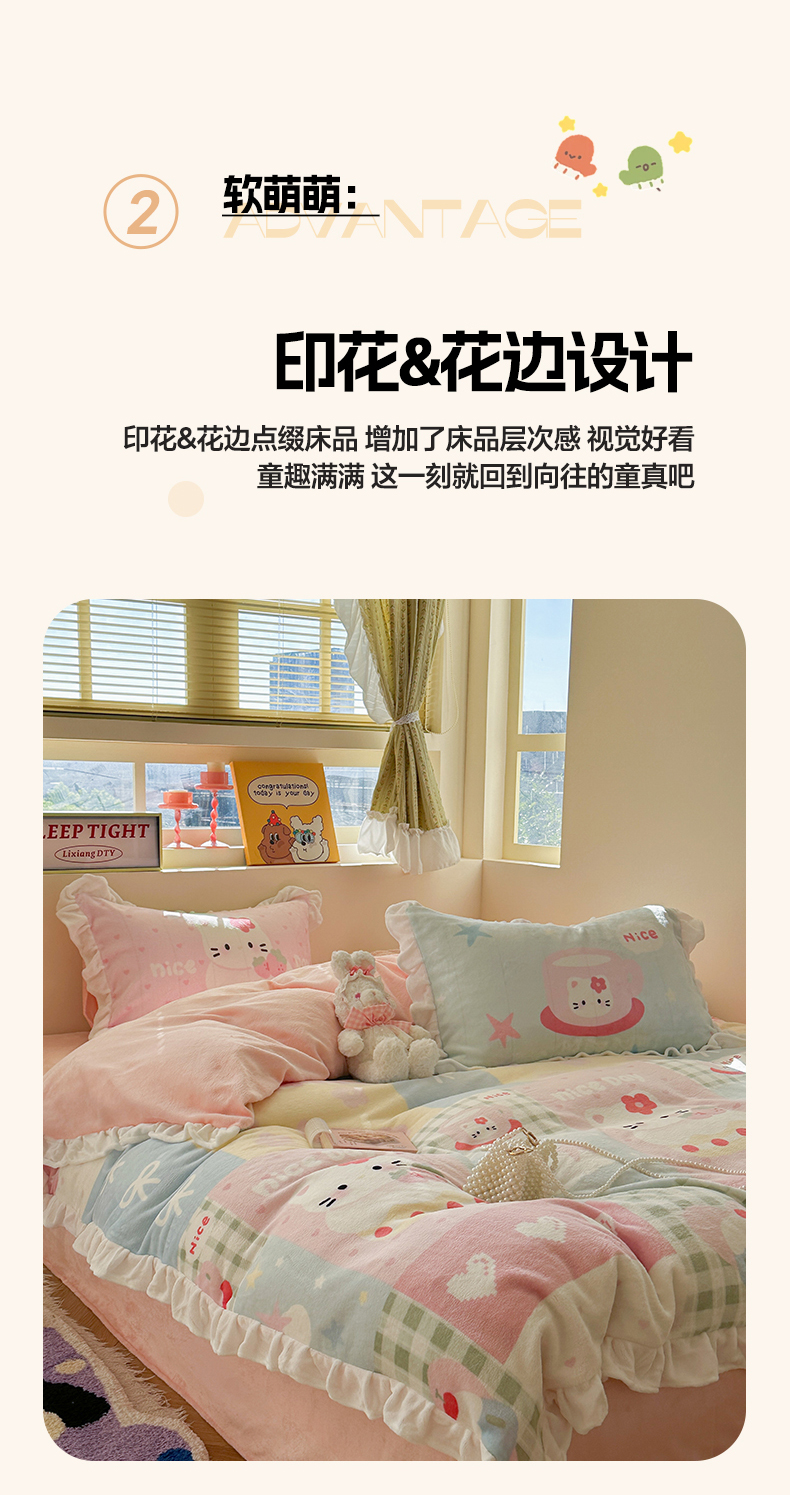 商品名称:(总)美乐迪家纺 2025新款加厚牛奶绒花边四件套