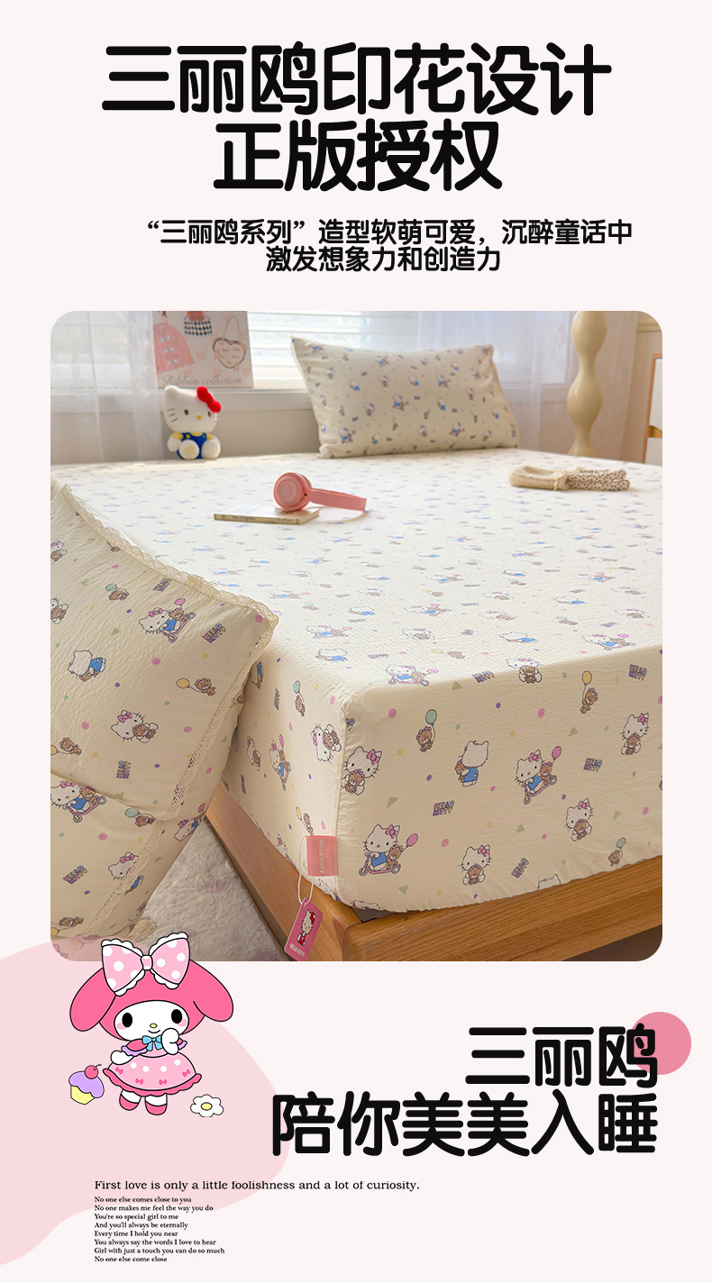 (总)梦庭帛美 2025新款高克重110克云感提花皱皱纱正版三丽鸥床笠,甜蜜电话-粉,条纹KT,童趣美乐蒂,彩绘小奶猫,木马美乐蒂,时尚库洛米,甜蜜电话-蓝,粉樱凯蒂,奶芙KT