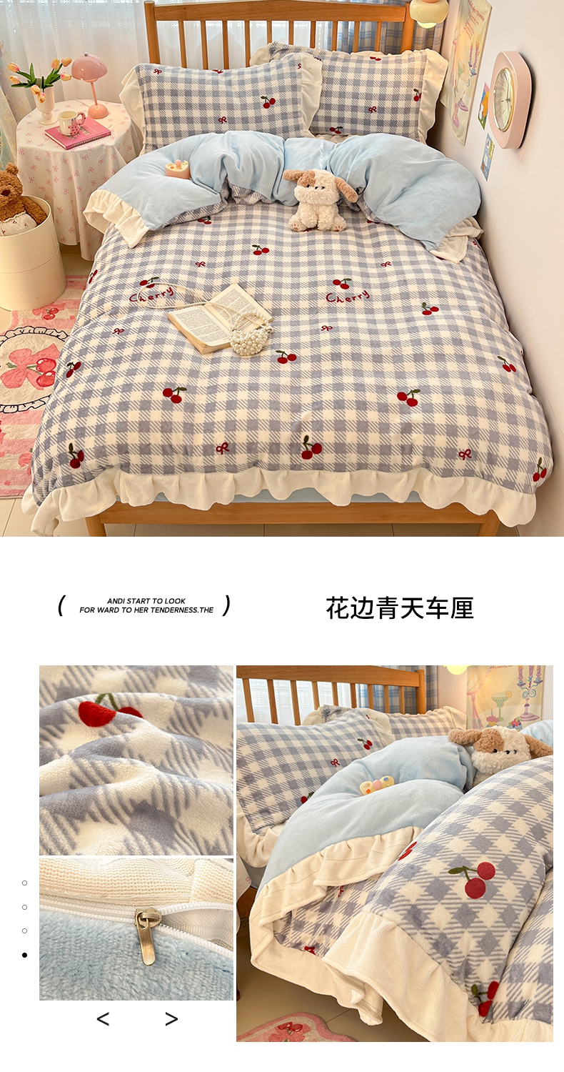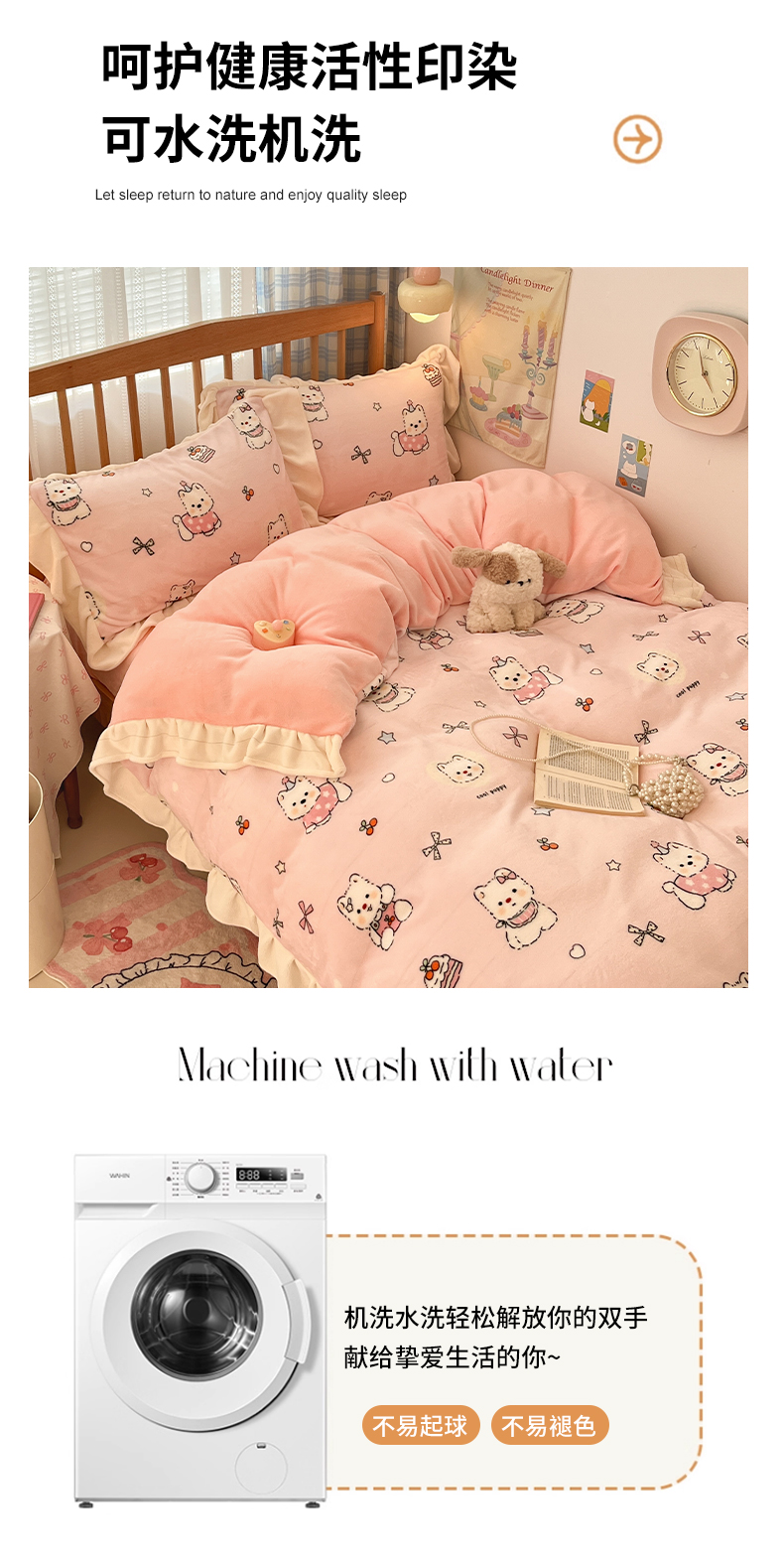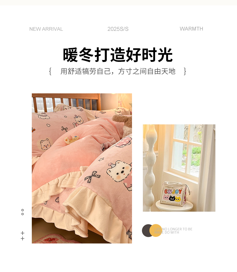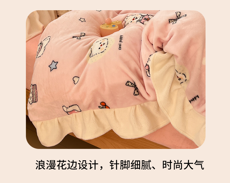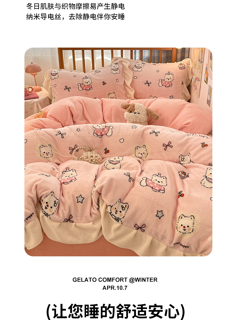 当前位置: 91家纺网 > 商品网购 > 床品套件 > 四件套 > 牛奶绒四件套 > 川悦生活 2025新款A类韩版花边牛奶绒四件套 花边茶派小狗粉
