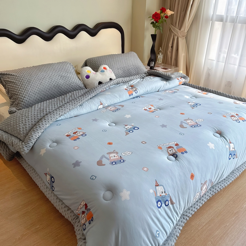 商品名称:兜米家居 2025新款针织豆豆绒被纯手工包边卡通立体豆豆绒保暖被被子被芯 工程车