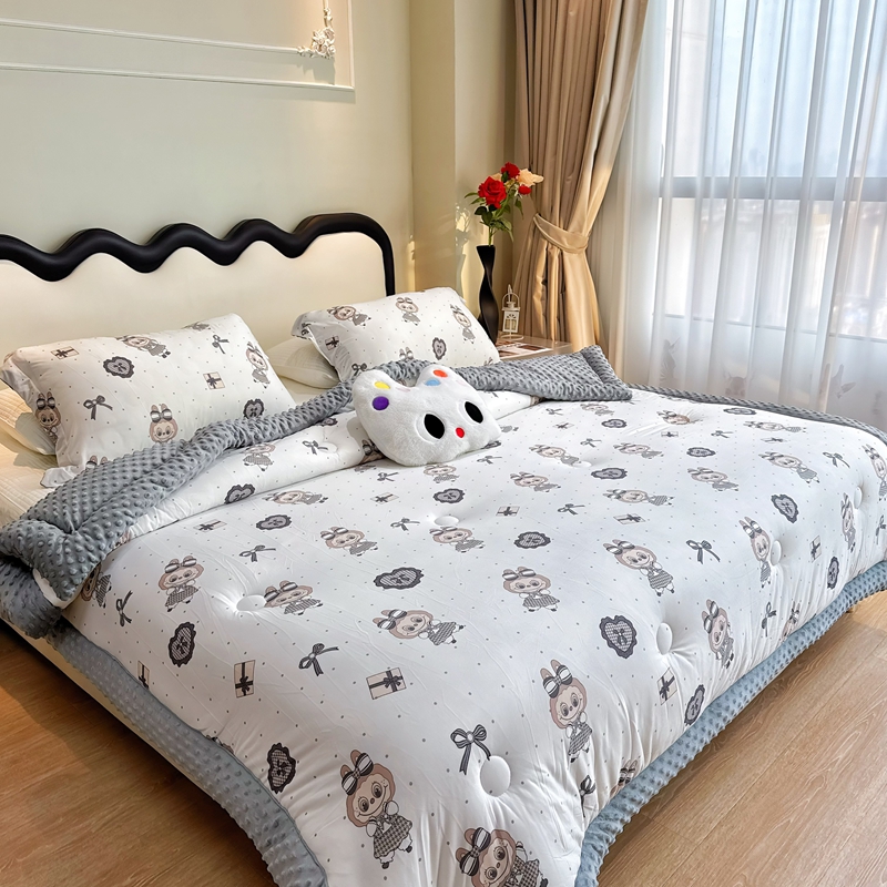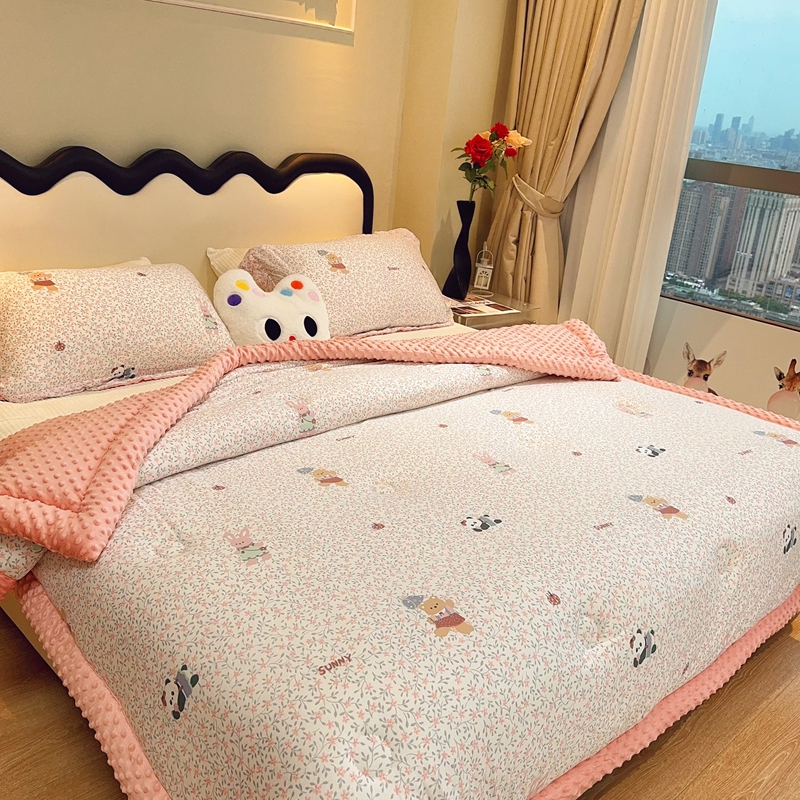 (总)兜米家居 2025新品秋冬母婴针织豆豆绒被纯手工包边卡通立体豆豆绒保暖被子被芯,滑板恐龙,巴拉小熊,花海,花花兔,花小象,幻境,可爱兔子,拉兔兔,兰花小狮子,萌宠小狗,喵喵,小碎花