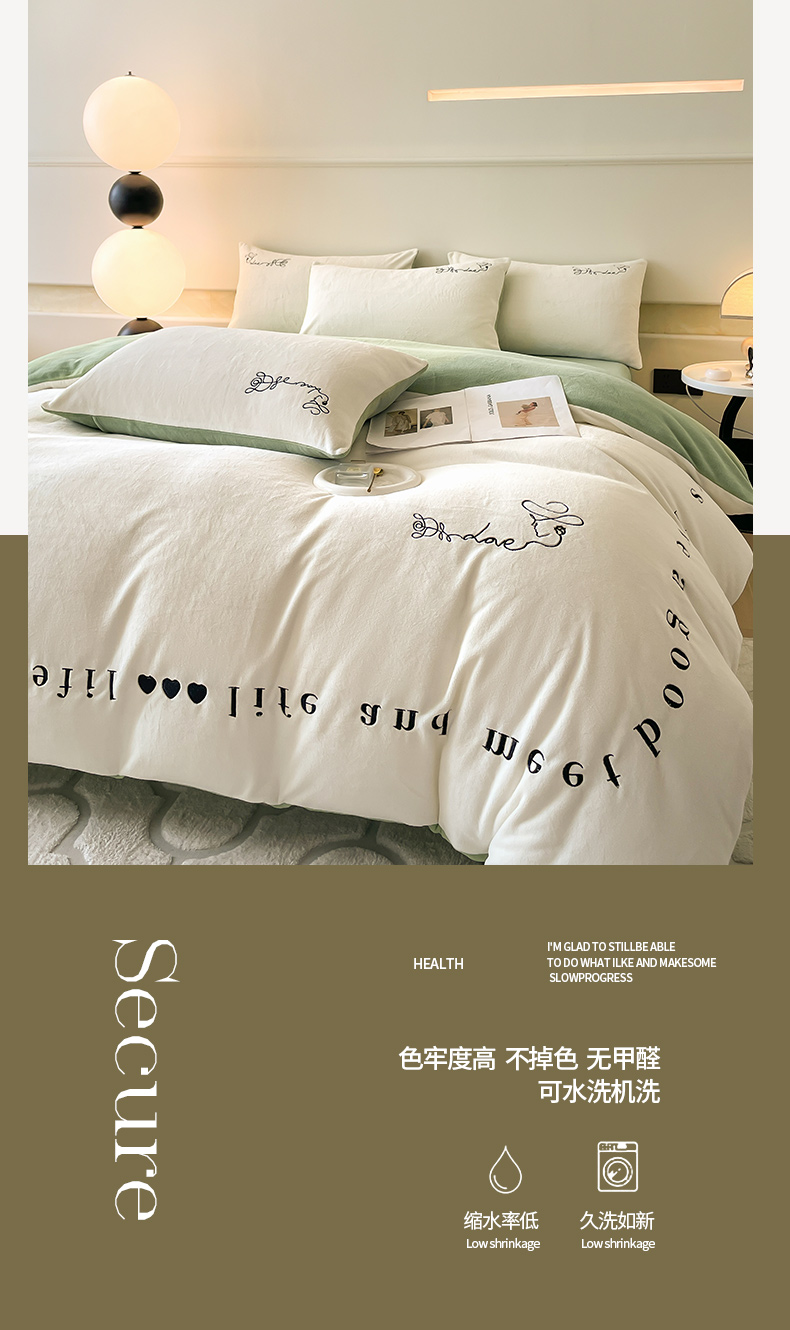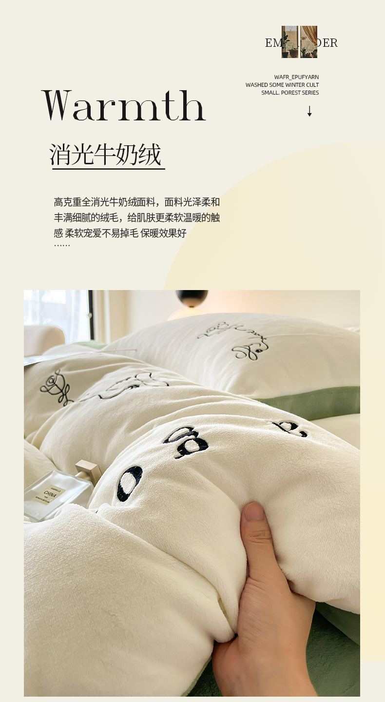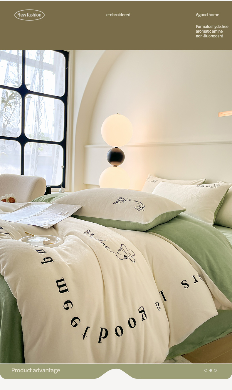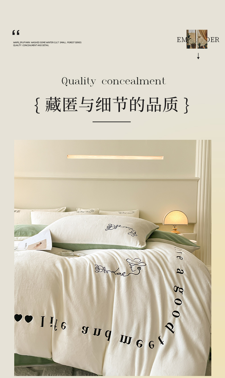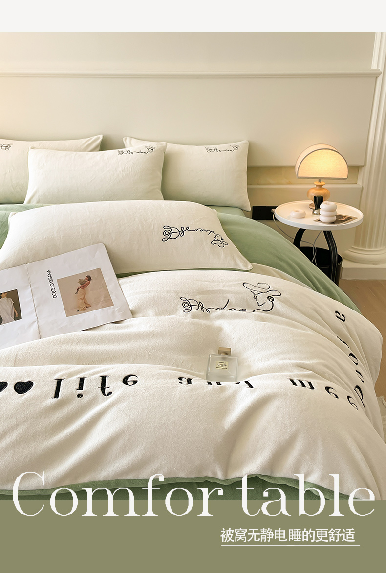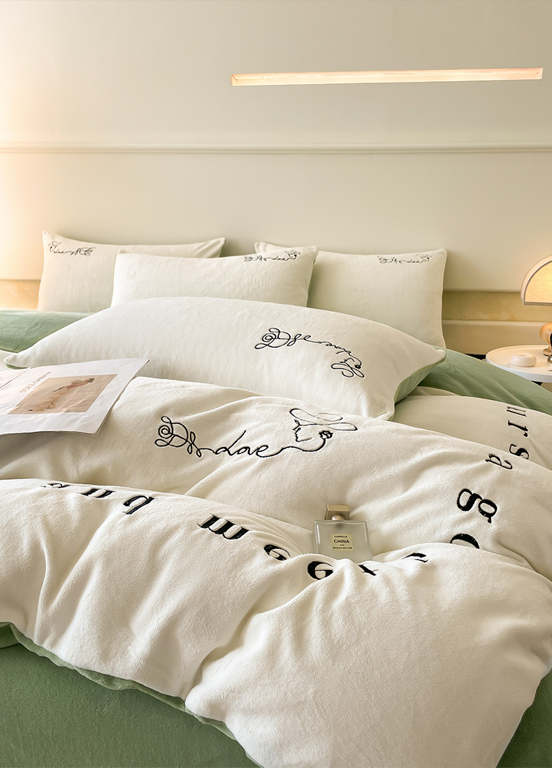 当前位置: 91家纺网 > 商品网购 > 床品套件 > 四件套 > 牛奶绒四件套 > ab家纺 2025新款字母绣花牛奶绒四件套-都市生活 都市生活白-绿