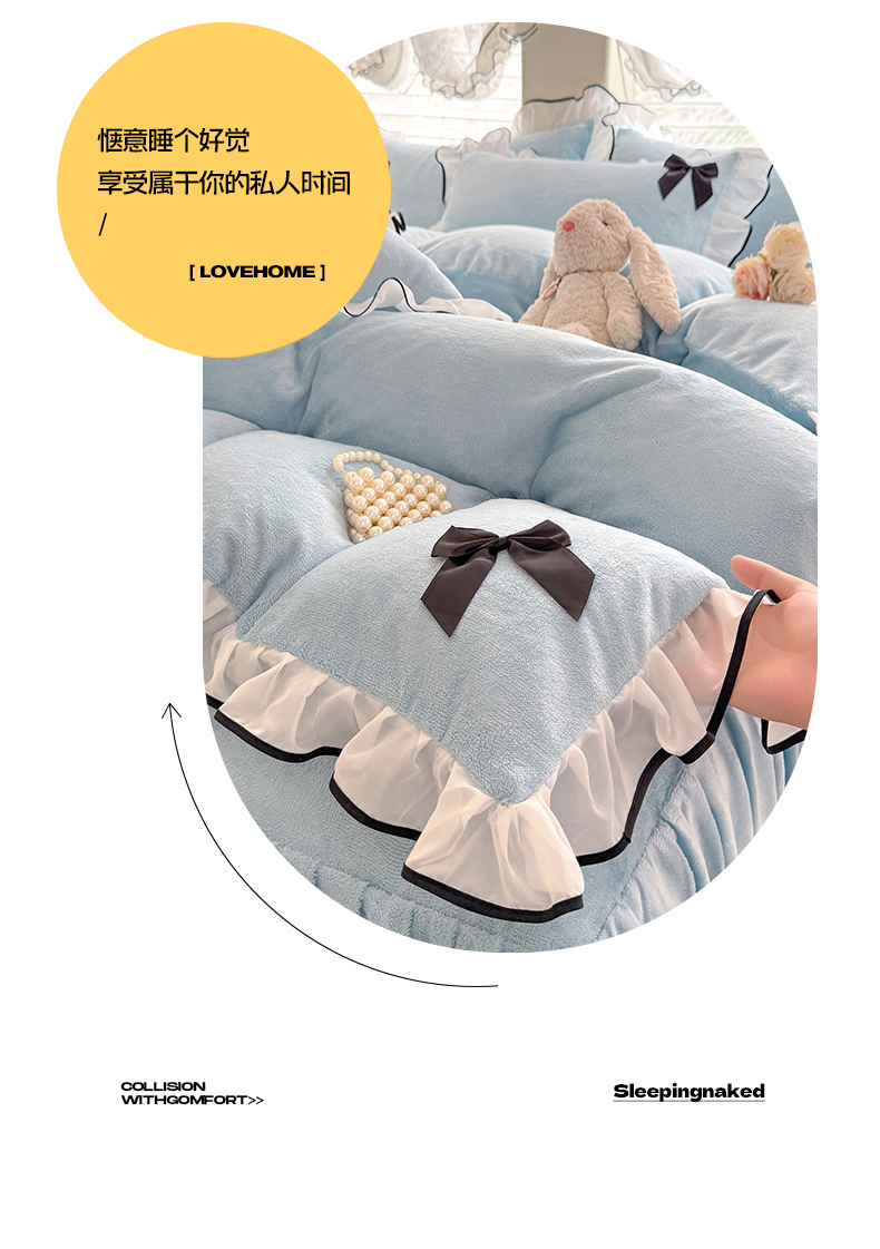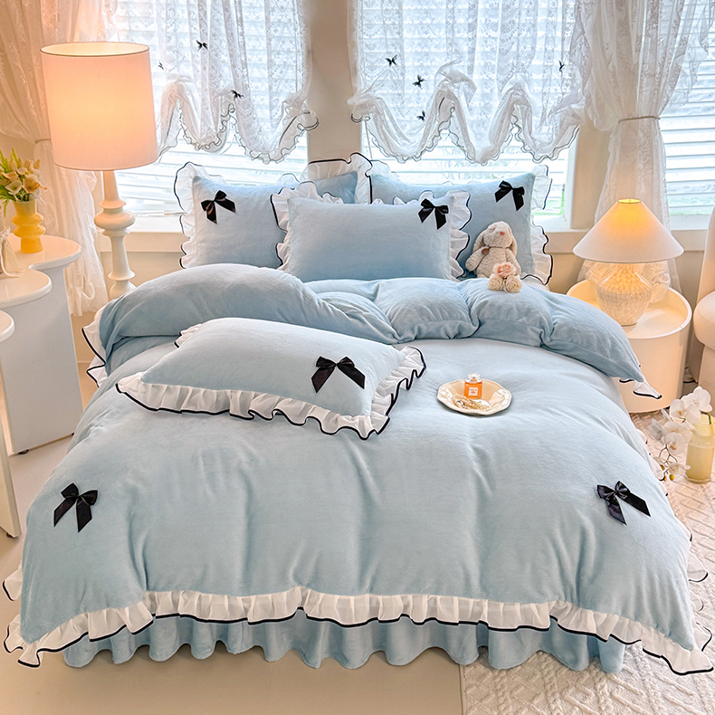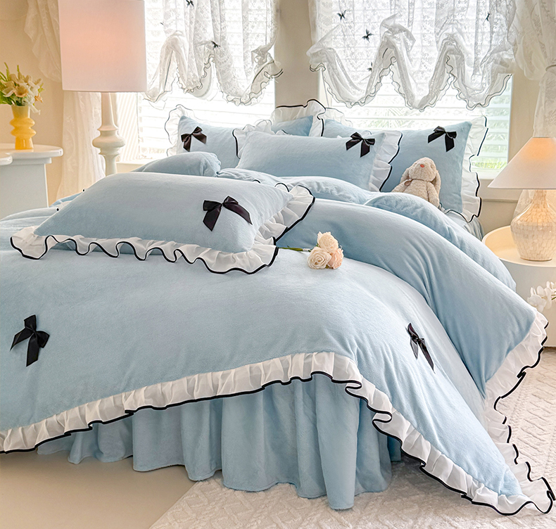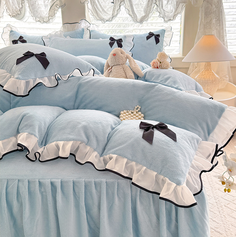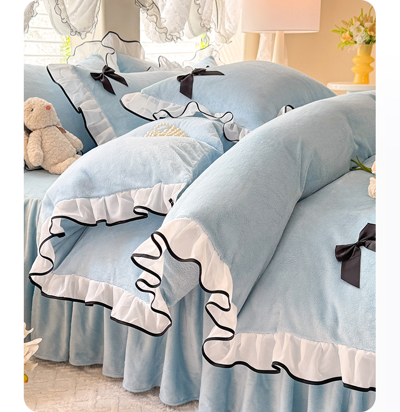 商品名称:莉莉安家纺 2025新款牛奶绒床裙四件套-潘多拉系列 潘多拉-浅蓝