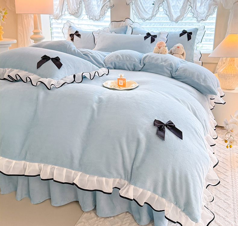 莉莉安家纺 2025新款牛奶绒床裙四件套-潘多拉系列 潘多拉-浅蓝