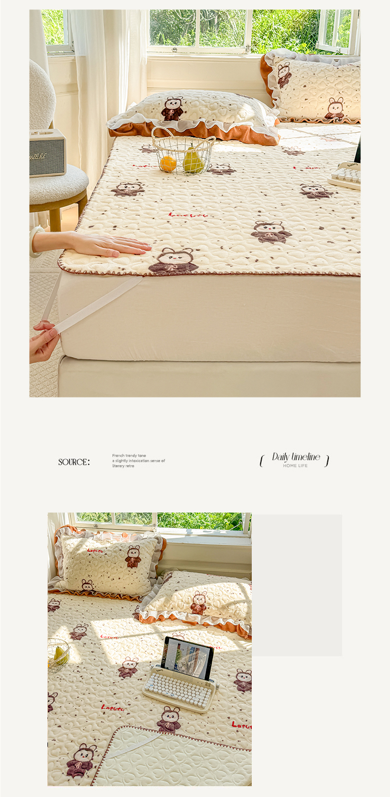• 91家纺网 家纺一手货源 找家纺 (总)禧缘家纺(原梦想家) 2025新款夹棉双层花边牛奶绒床笠三件套系列,布布乐园,步步生花,杏花微雨,雾都茶花,摩卡小镇,猫咪心事,浪漫花开,蓝铃风语,狗狗岛屿,落日云舒