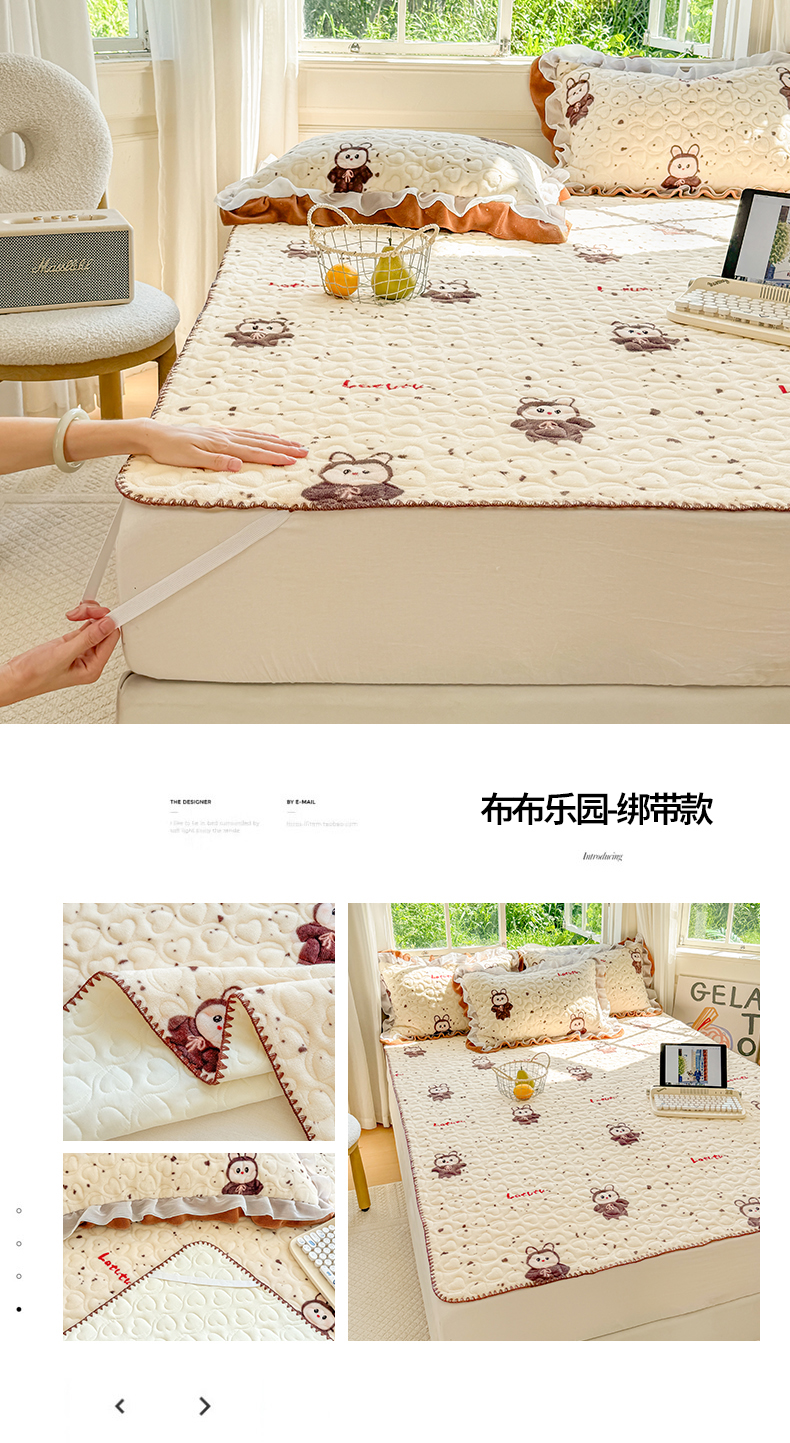 (总)禧缘家纺(原梦想家) 2025新款牛奶绒三角针绑带款夹棉床笠床单,布布乐园-绑带款,步步生花-绑带款,杏花微雨-绑带款,雾都茶花-绑带款,摩卡小镇-绑带款,猫咪心事-绑带款,浪漫花开-绑带款,蓝铃风语-绑带款,狗狗岛屿-绑带款,落日云舒-绑带款