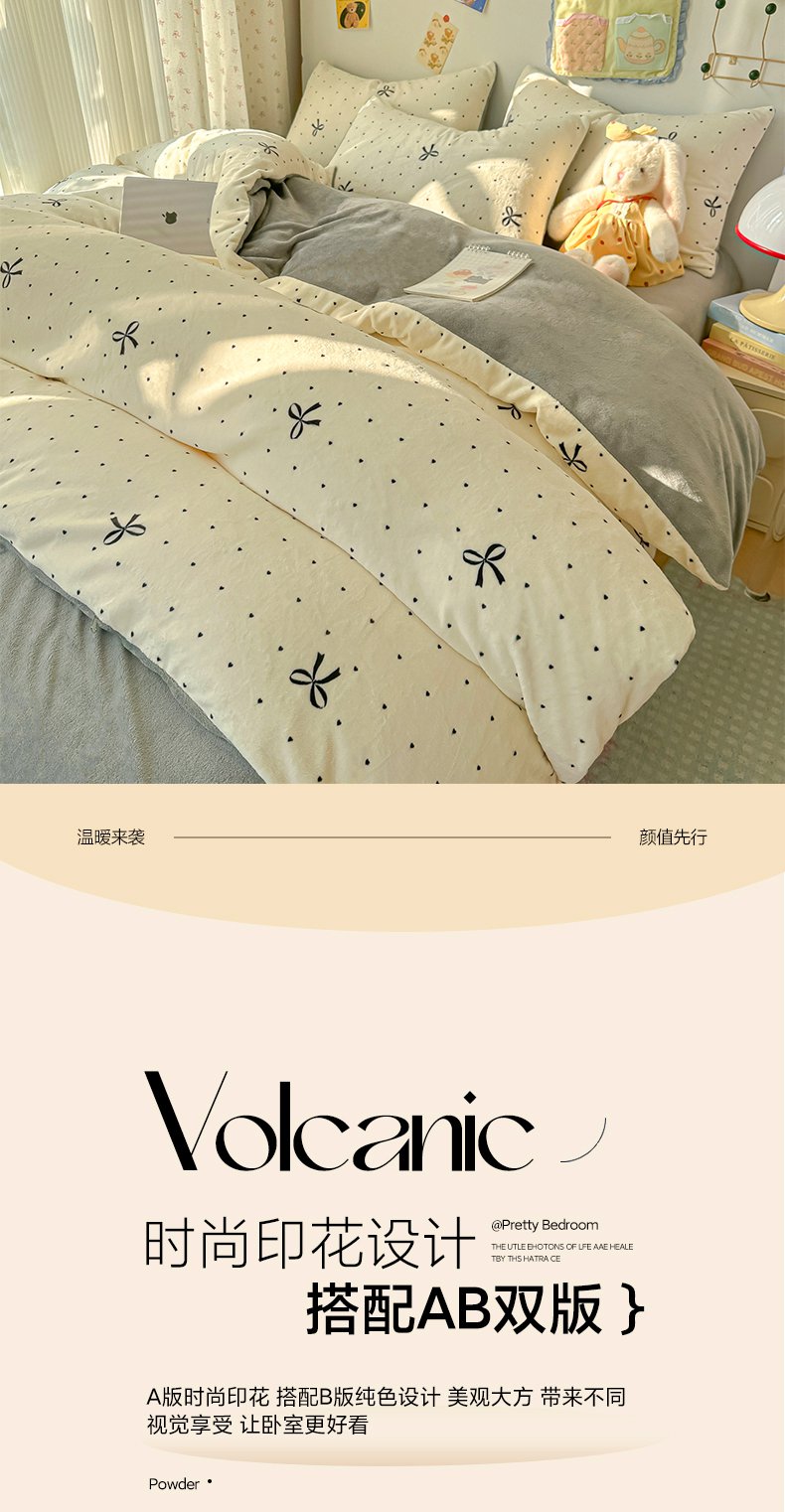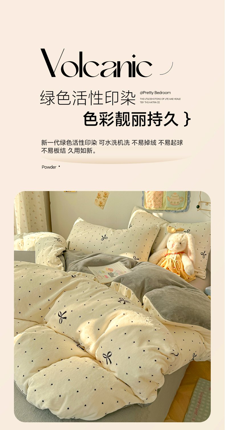 韩巢家纺 2025新款高克重印花牛奶绒床品四件套 爱心小樱桃,爱心小樱桃