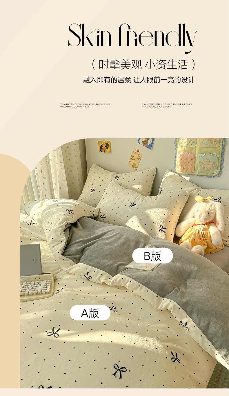 商品名称:韩巢家纺 2025新款双面高克重牛奶绒被套单件被罩 蝴蝶点点心