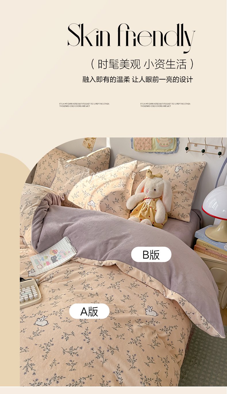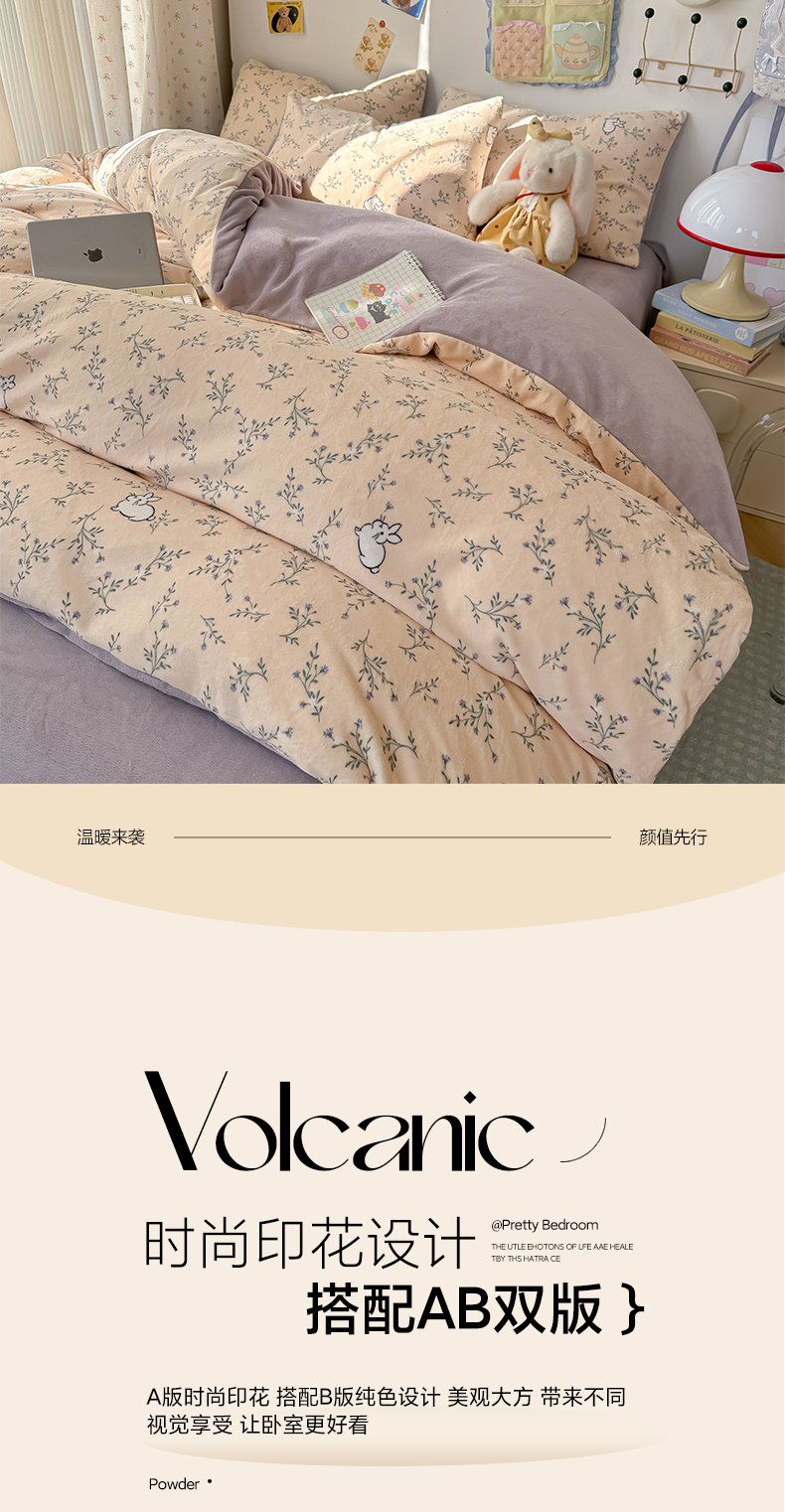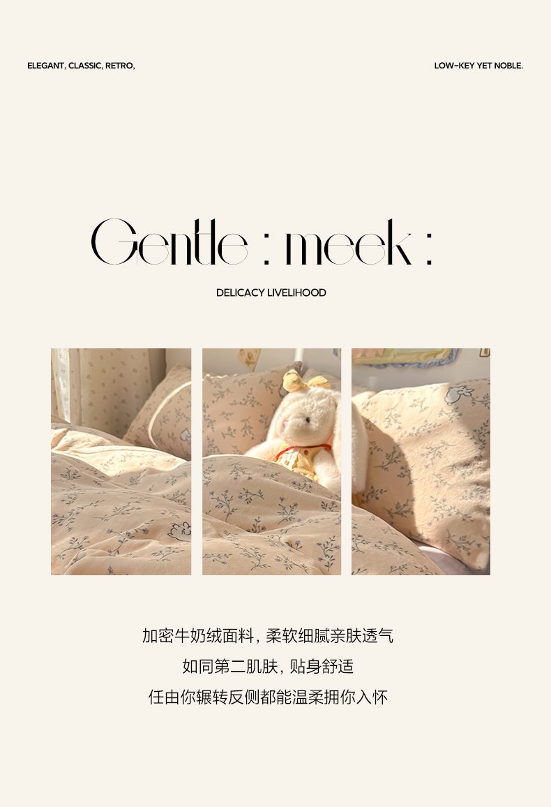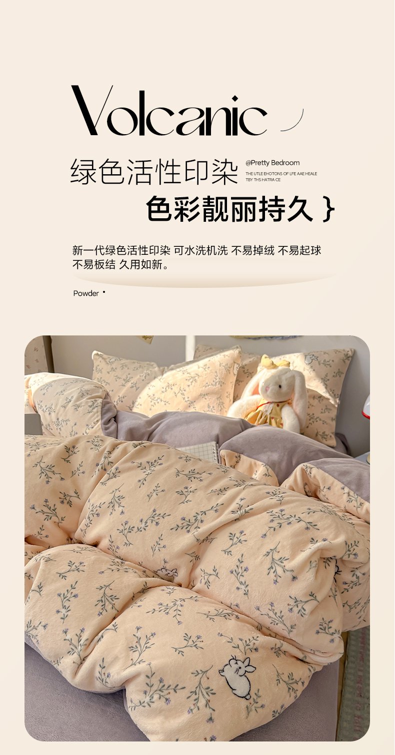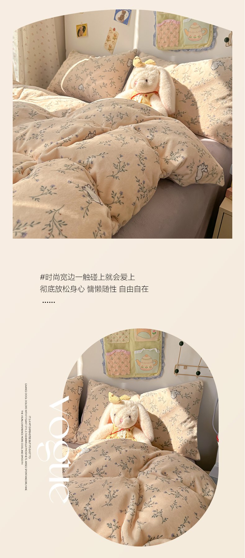 韩巢家纺 2025新款高克重印花牛奶绒床品四件套 田园小花,田园小花