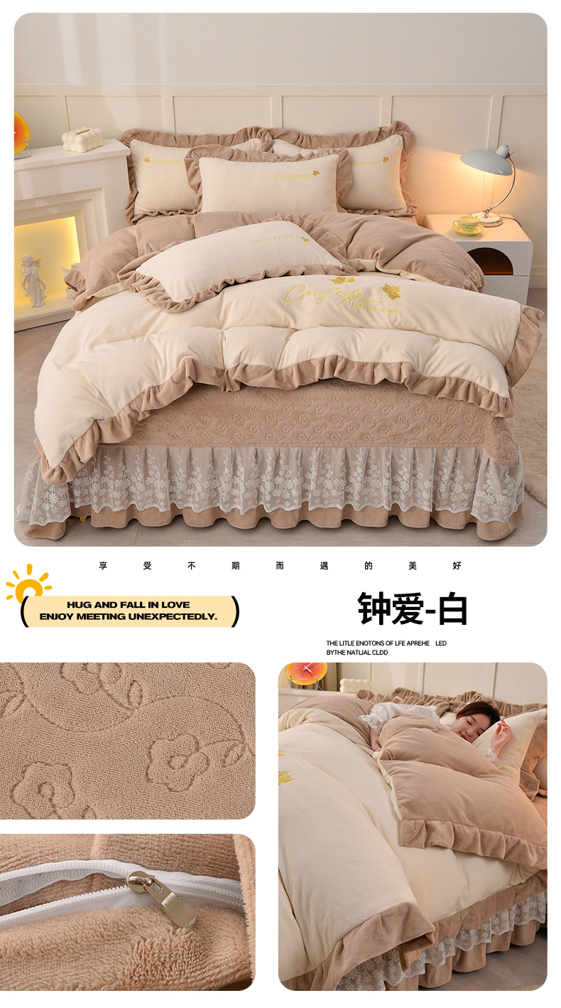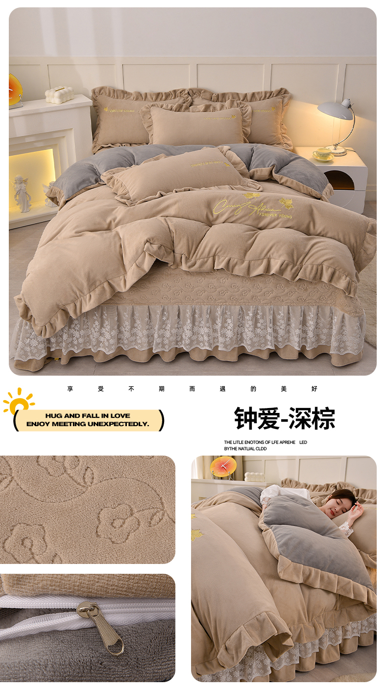 (总)湘雪家居 2025新款高克重纯色刺绣牛奶绒床盖款系列四件套-提供买家秀