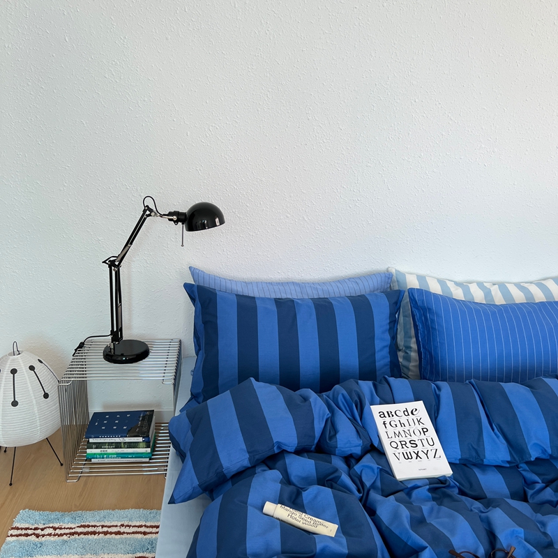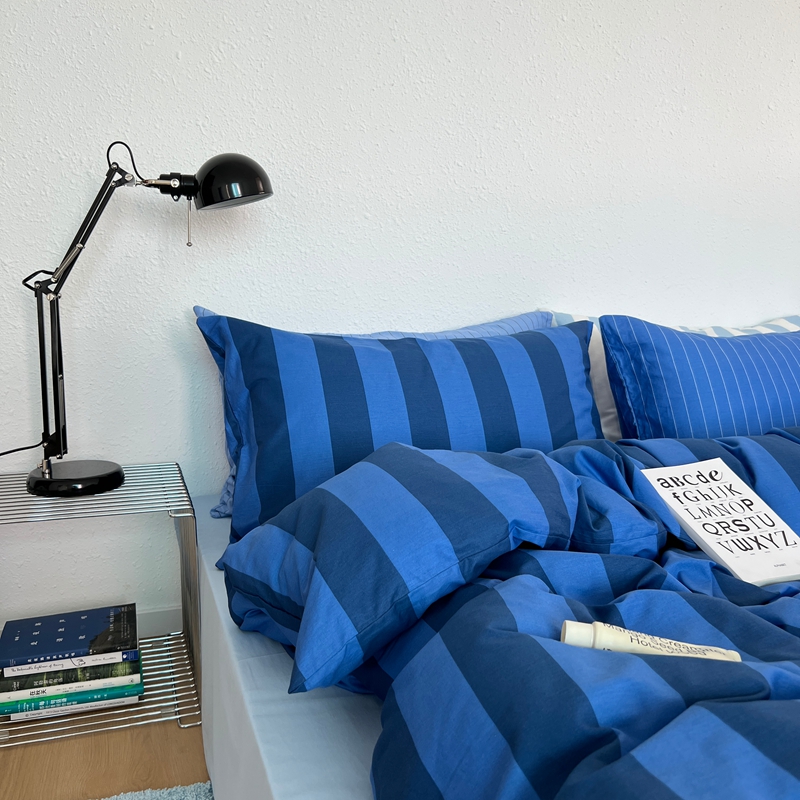 当前位置: 91家纺网 > 商品网购 > 床品套件 > 四件套 > 全棉普通四件套 > 蜜宿 2025新款亲肤舒适混搭条纹全棉纯棉斜纹四件套-蓝调冰岛 蓝调冰岛(月光蓝条+天空蓝条)
