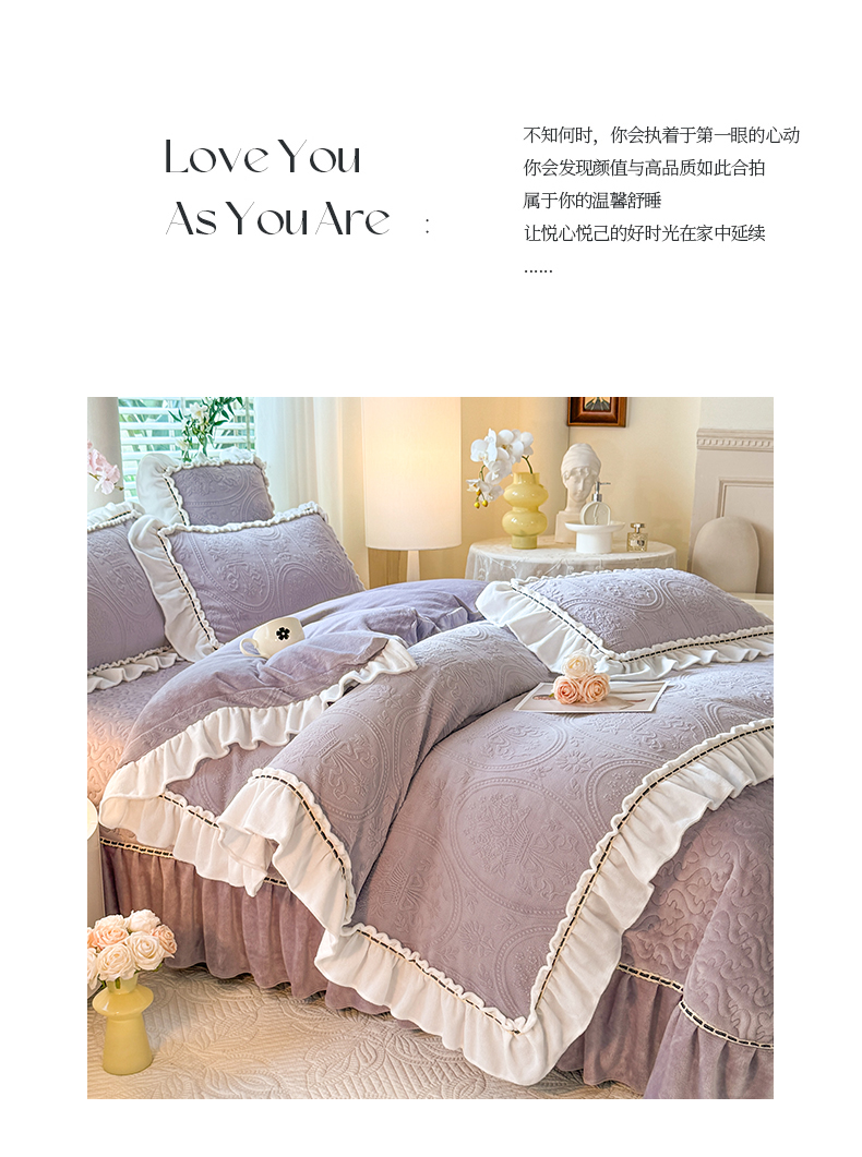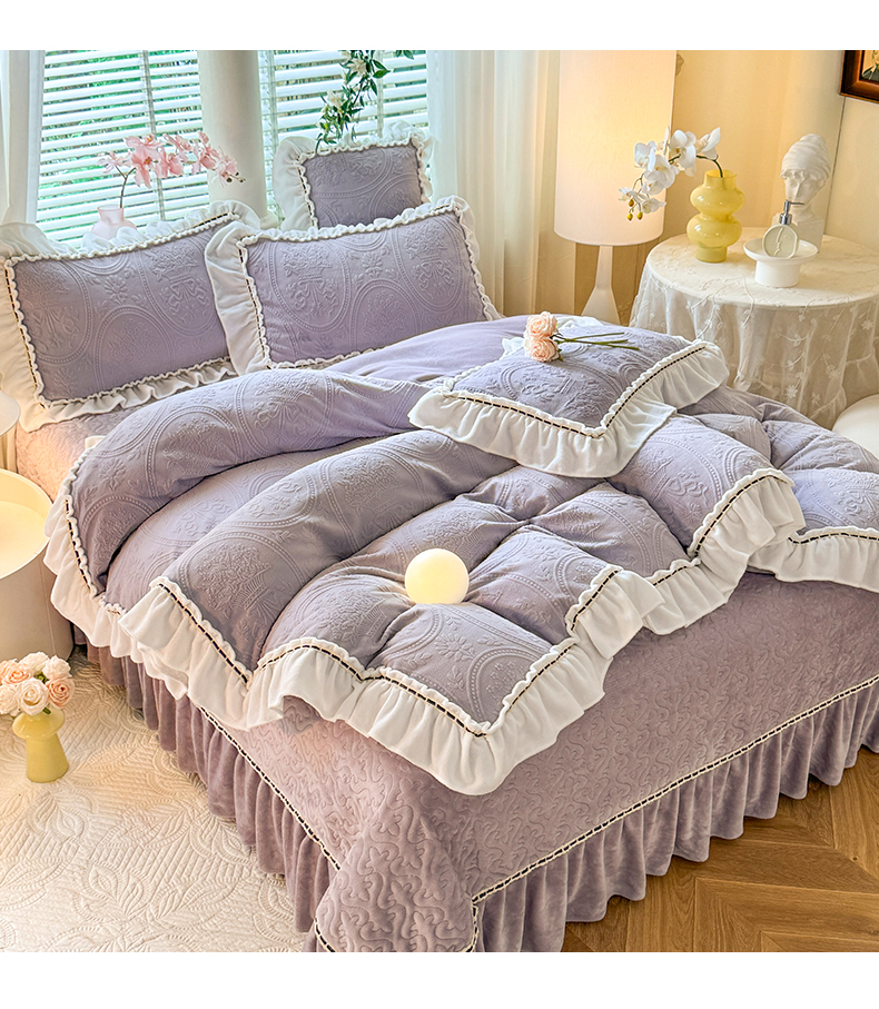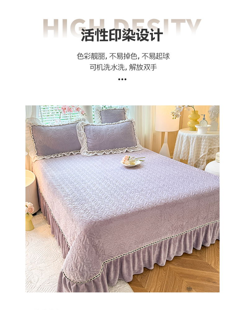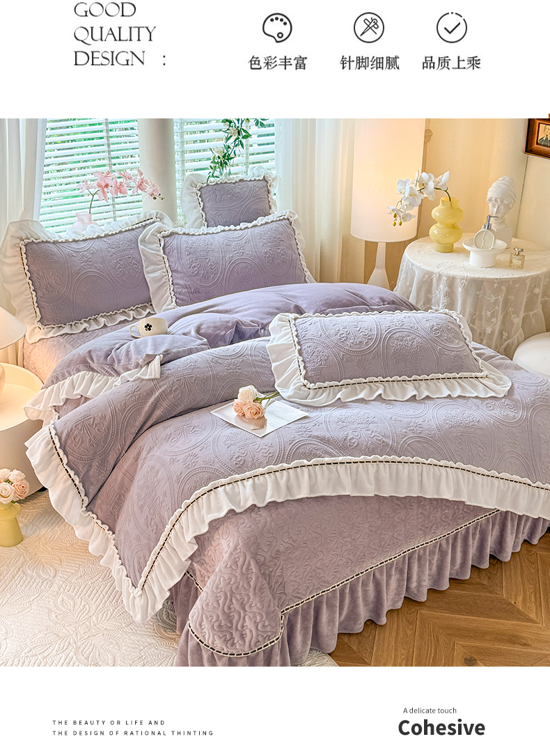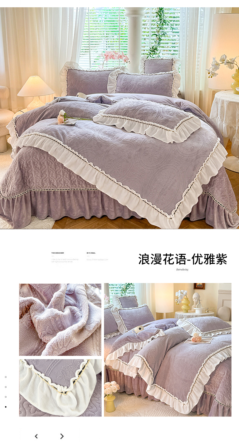 商品名称:花香四季家纺 2025新款A类雕花绒夹棉床盖款四件套-浪漫花语 浪漫花语-优雅紫